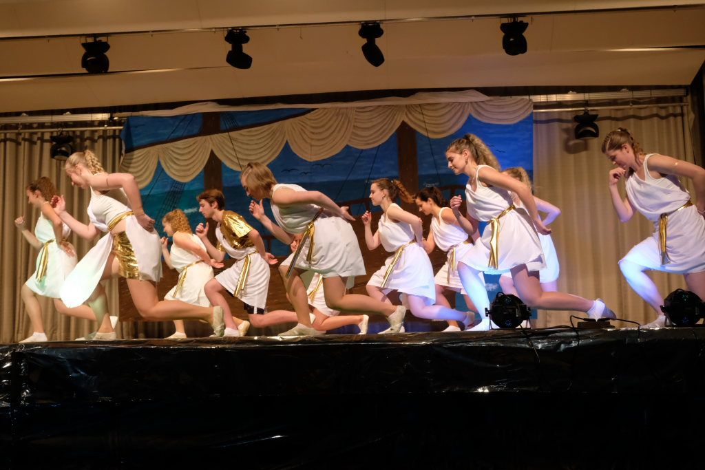 Dionysos zeigte sich hocherfreut über die jungen Männer der Ungeziefergarde: „Das sind meine Bacchanten!“ Diese zeigten, ausgehend von einer Sirtaki-Performance, eine reife tänzerische Leistung – vor allem auch beim anschließenden Modern dance. Zugaberufe bestätigten dies.