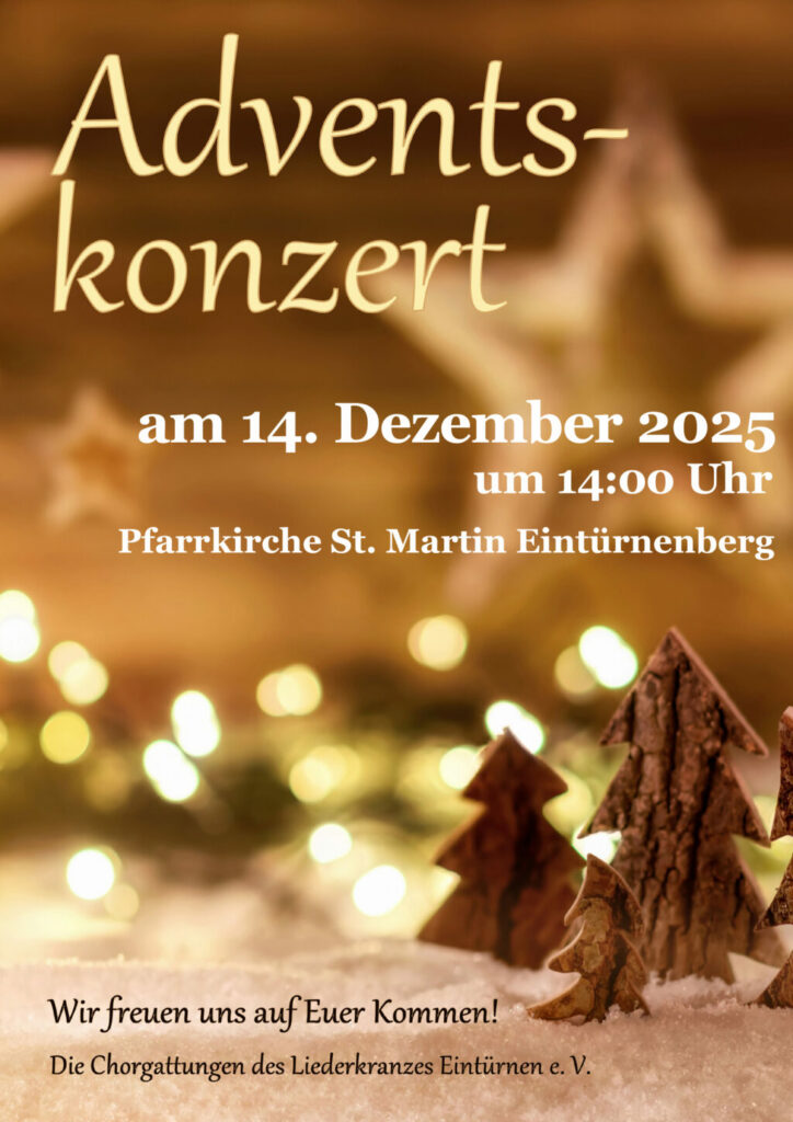 Eintürnen – Am Sonntag, 14. Dezember, findet um 14.00 Uhr in der Kirche Sankt Martin Eintürnenberg das Adventskonzert des Liederkranzes Eintürnen statt.