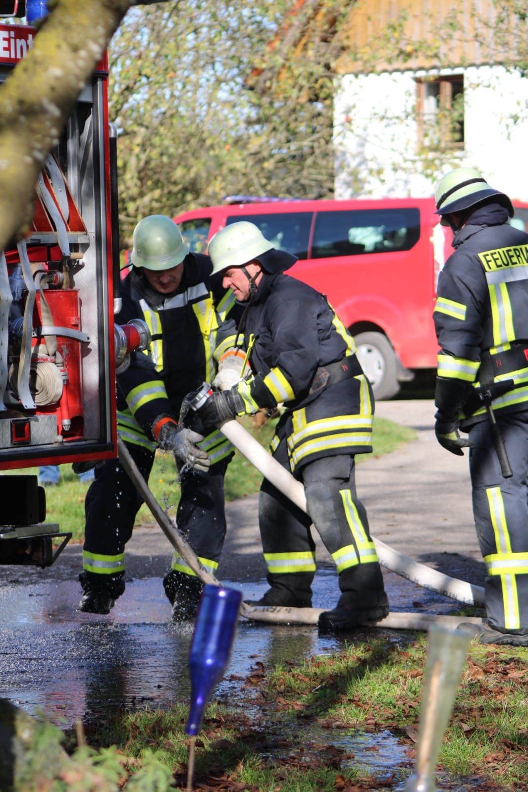 Bad Wurzach-Eintürnen – Hauptprobe der Feuerwehrabteilung Eintürnen: Bei schönstem Herbstwetter wurden die Feuerwehrkameradinnen und -kameraden nach Dietrichsholz gerufen.