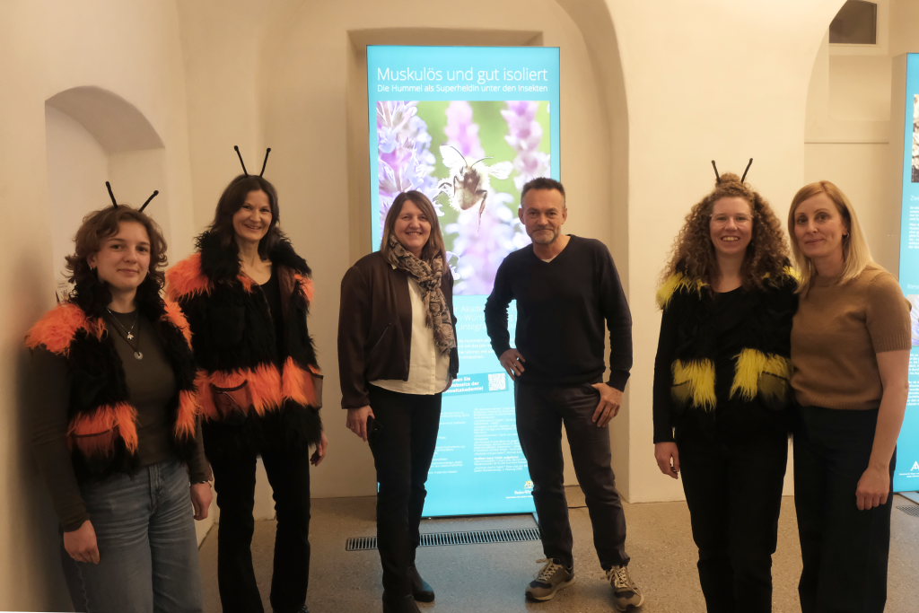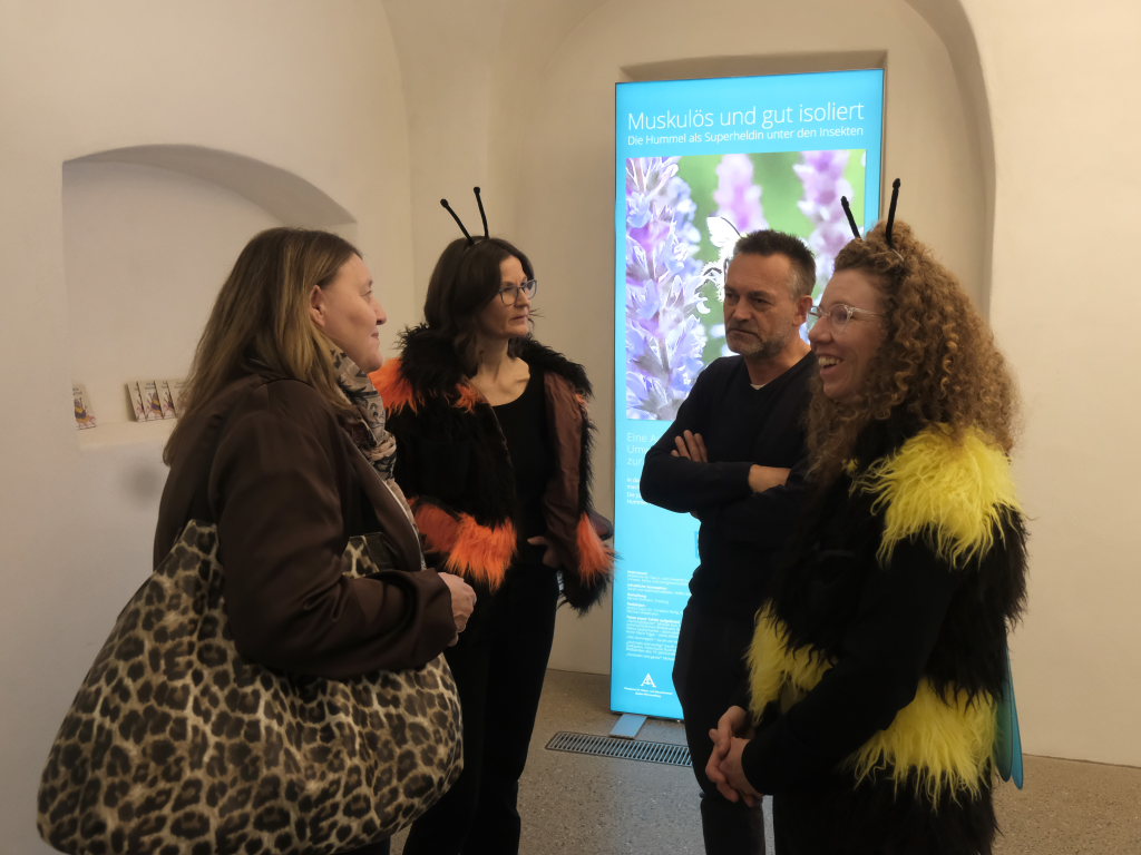 Für Bürgermeisterin Alexandra Scherer, die qua Amtes Stiftungsratvorsitzende der Stiftung Naturschutz als Träger des Naturschutzzentrums Wurzacher Ried ist, war es eine große Freude, die Ausstellung zu eröffnen. „Besser kann man das Thema nicht präsentieren,“ sagte sie in ihrer Begrüßung der zahlreichen Gäste zu den drei Damen des Naturschutzzentrums, die sich als „Hummeler“ verkleidet hatten, wie die großen Insekten im Schwäbischen heißen.