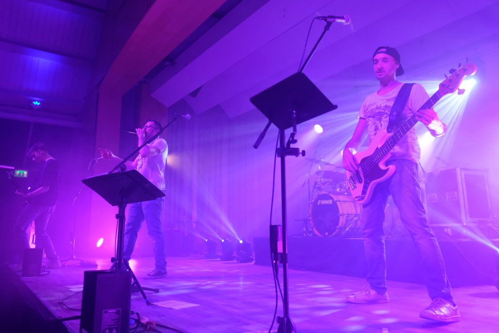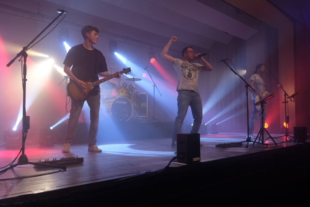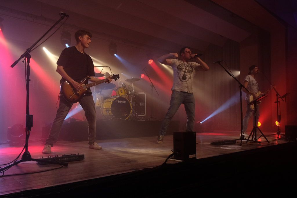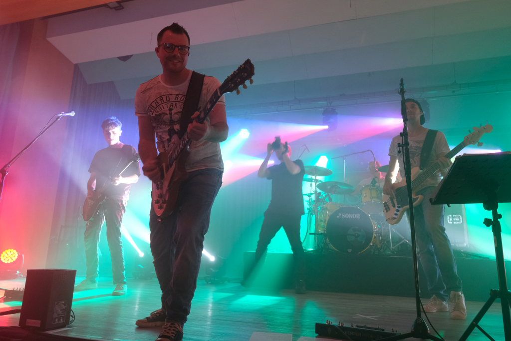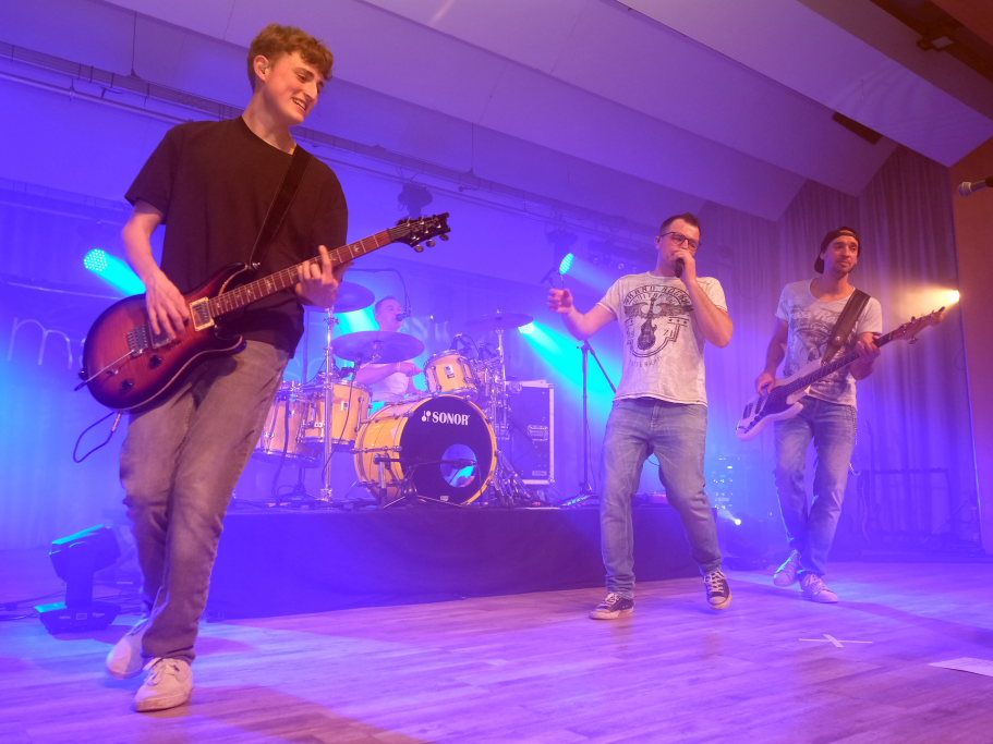 Die 4-köpfige Band „marshy soil“ das sind in klassischer Rock-Besetzung – zwei Gitarren Pascal Schmehl und Malte Lindenmeier, den Bass zupft Alexander Strobel und die Schießbude (ak das Schlagzeug) bedient sein Bruder Florian Strobel. Sie spielen Musikklassiker aus den letzten 6 Jahrzehnten. „Das Programm der Band beinhaltet nur Songs, die zum Mitsingen und Tanzen animieren. Die Band hat den Anspruch, jede Party, egal ob groß oder klein, zu einem Festival zu machen.“ So beschreibt sich die Band auf ihrer Homepage selbst. Ihr Stern ging beim Band-Contest 2015, veranstaltet vom HGV Bad Wurzach auf. Im vergangenen Jahr feierten die vier das 10 -ährige Bestehen der Band, die auf der Bühne angeführt von Leadsänger Pascal Schmehl so wie jetzt im Saal des Torfstechers immer Vollgas geben.
