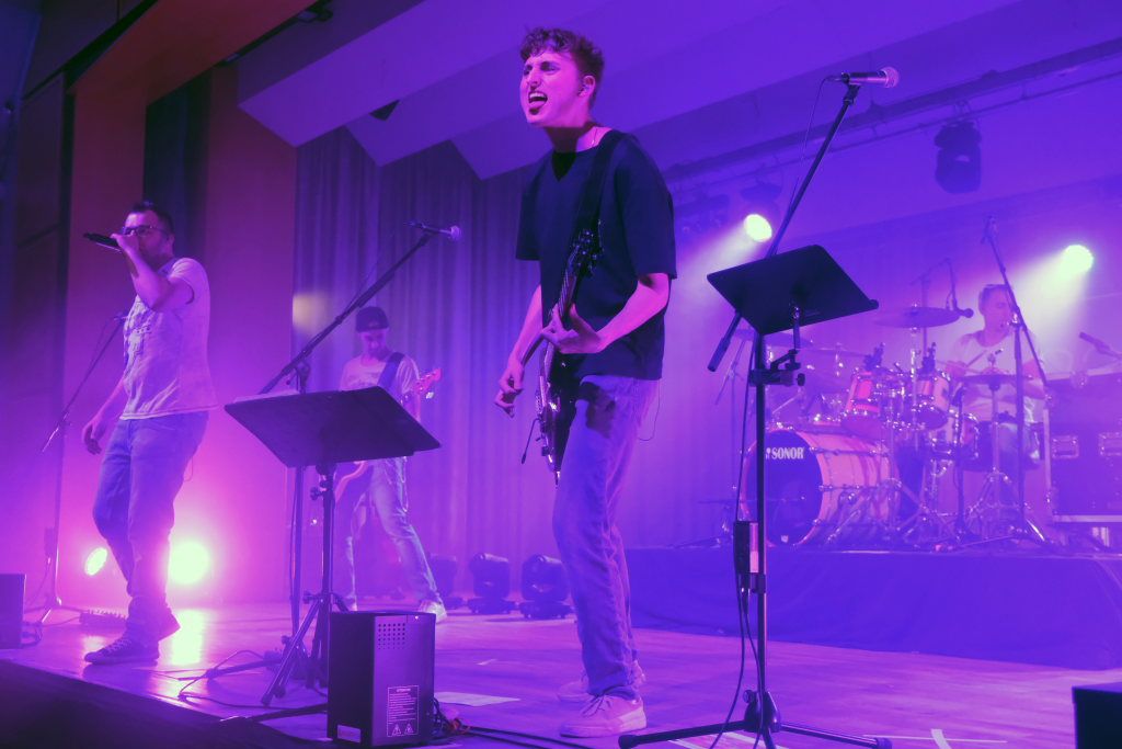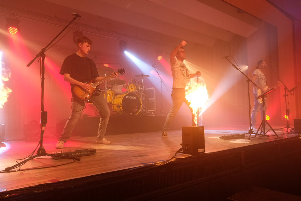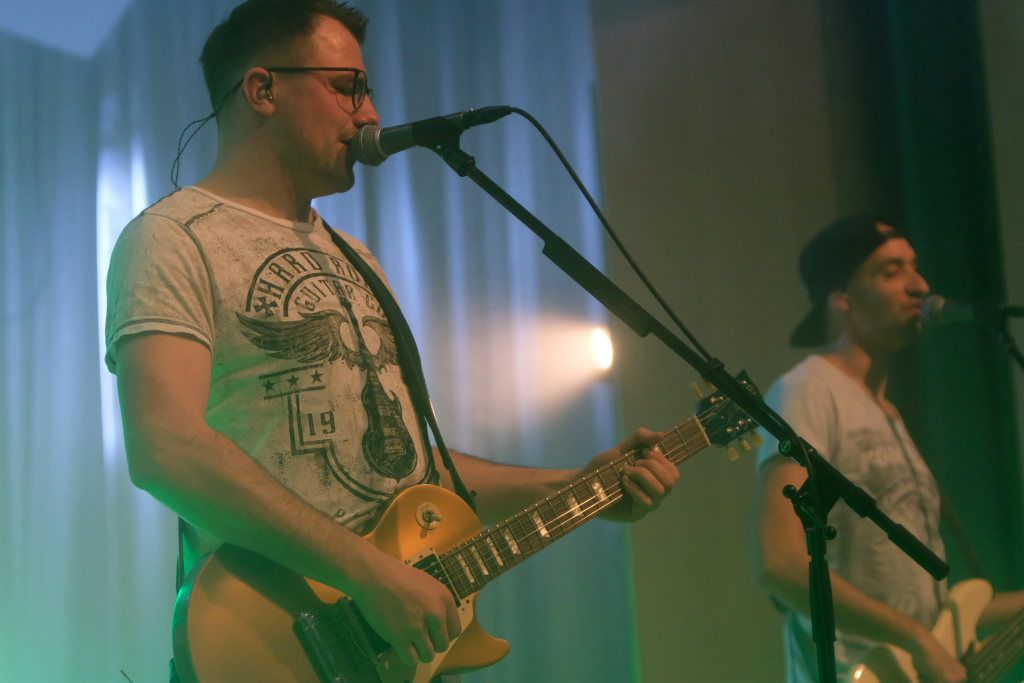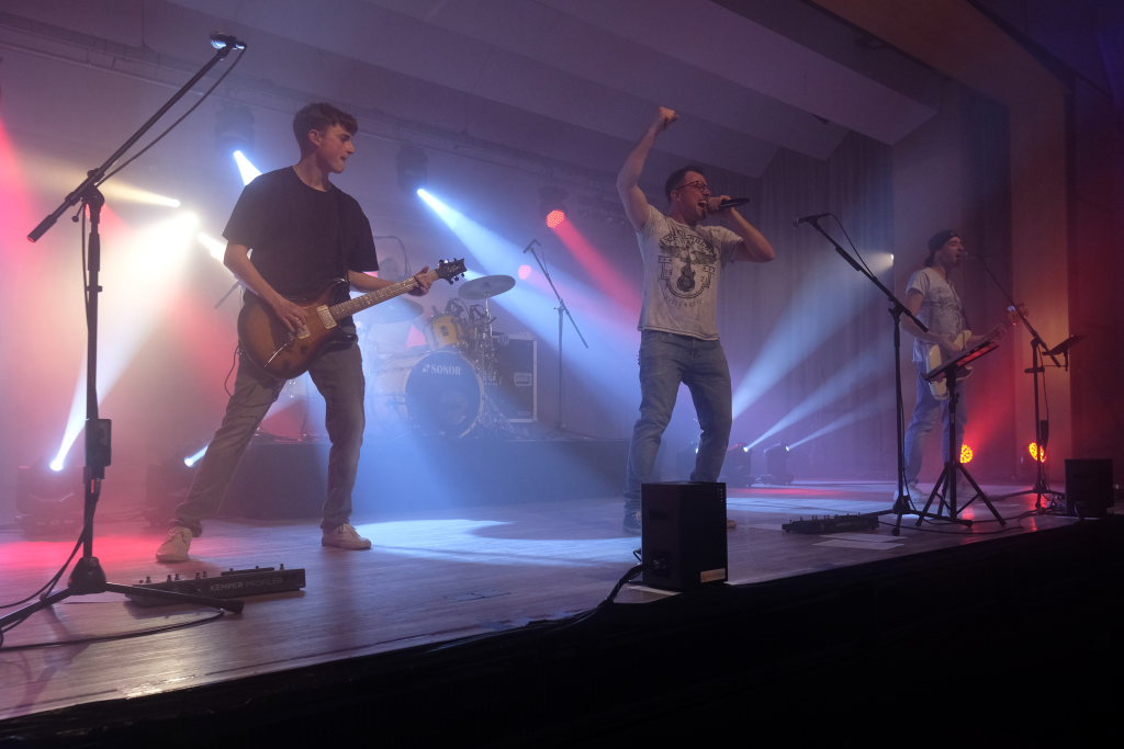 Die 4-köpfige Band „marshy soil“ das sind in klassischer Rock-Besetzung – zwei Gitarren Pascal Schmehl und Malte Lindenmeier, den Bass zupft Alexander Strobel und die Schießbude (ak das Schlagzeug) bedient sein Bruder Florian Strobel. Sie spielen Musikklassiker aus den letzten 6 Jahrzehnten. „Das Programm der Band beinhaltet nur Songs, die zum Mitsingen und Tanzen animieren. Die Band hat den Anspruch, jede Party, egal ob groß oder klein, zu einem Festival zu machen.“ So beschreibt sich die Band auf ihrer Homepage selbst. Ihr Stern ging beim Band-Contest 2015, veranstaltet vom HGV Bad Wurzach auf. Im vergangenen Jahr feierten die vier das 10 -ährige Bestehen der Band, die auf der Bühne angeführt von Leadsänger Pascal Schmehl so wie jetzt im Saal des Torfstechers immer Vollgas geben.