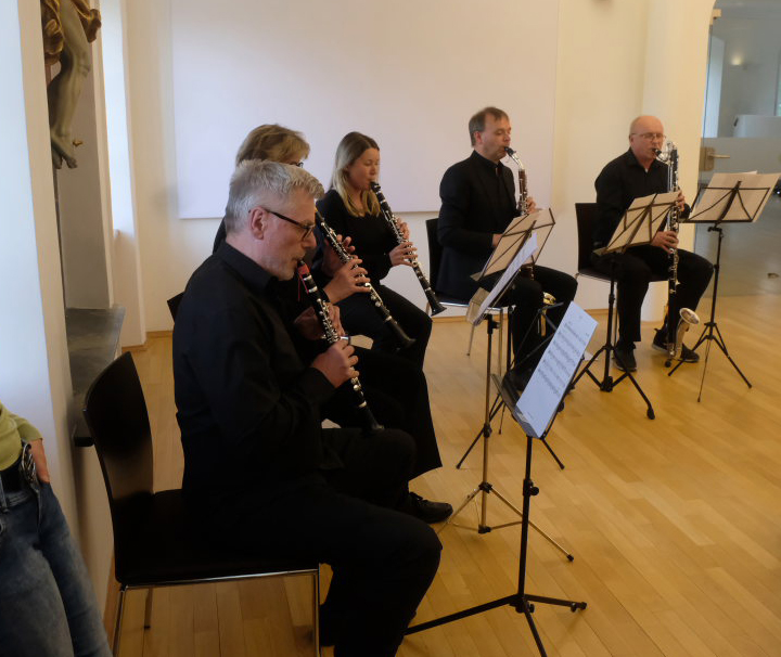 Auch bei diesem Termin war der Sitzungssaal wieder proppenvoll, was nicht zuletzt auch dem musikalischen Leckerbissen mitgeschuldet gewesen sein durfte. Georg Stankalla hatte die Komposition im Rahmen des Projektes „FeelMoreMusic“ als Auftragsarbeit für die Stadtkapelle Bad Wurzach im Jahre 2021 geschrieben. Sie war vom Klarinettenchor der Stadtkapelle bei deren Konzert im Mai 2022 uraufgeführt worden.