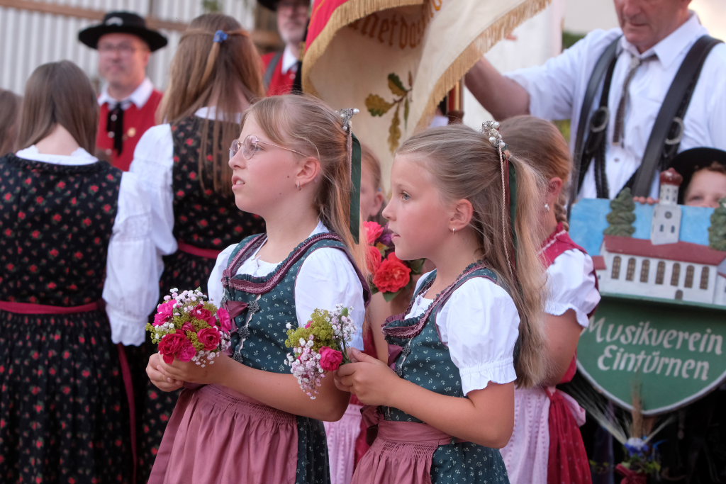 Jede der zehn Kapellen war mit Fahne und Blumenkindern angetreten.