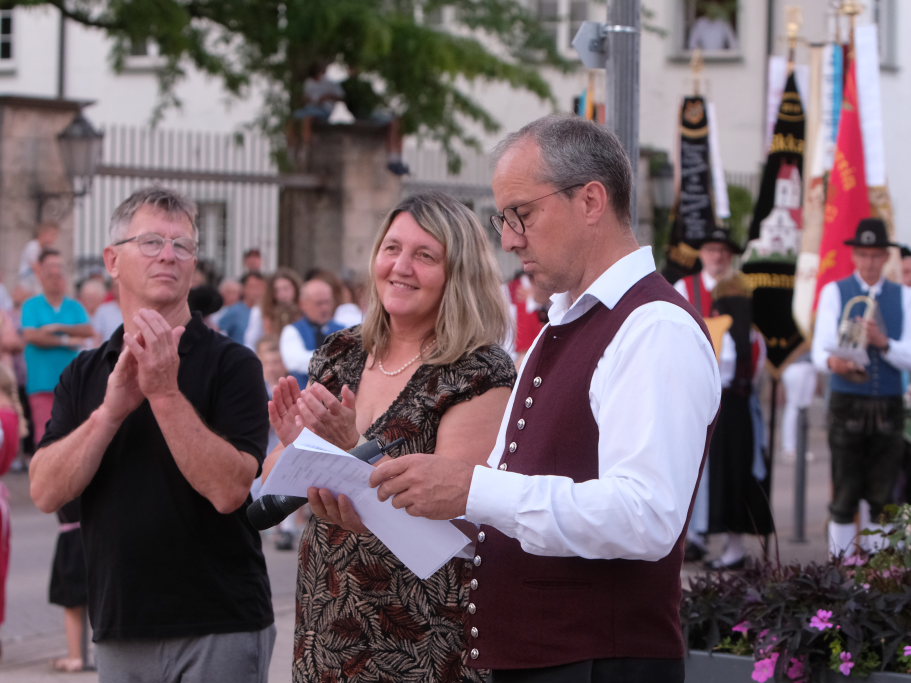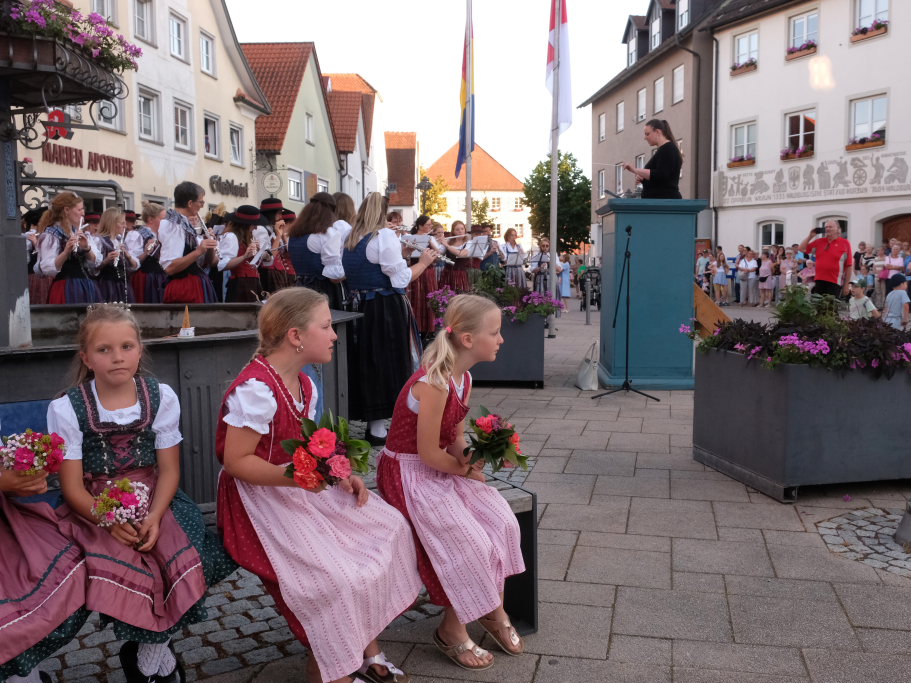 In ihrem Grußwort freute sich Bürgermeisterin Alexandra Scherer im Anschluss über den wunderschönen Sommertag und dankte allen, die im Vorfeld oder während der Veranstaltung zum Gelingen beitrugen. Besonderen Dank richtete sie an Wolfgang Grösser, der bereits seit einigen Jahren durch das Programm führt und seitens der Musikkapellen die Hauptorganisation übernimmt, und auch an Eva-Maria Oberleiter, die nun die musikalische Leitung des Gesamtchores von Petra Springer übernommen hat.