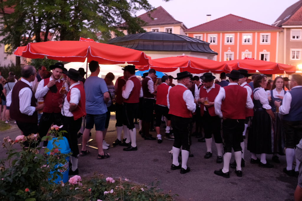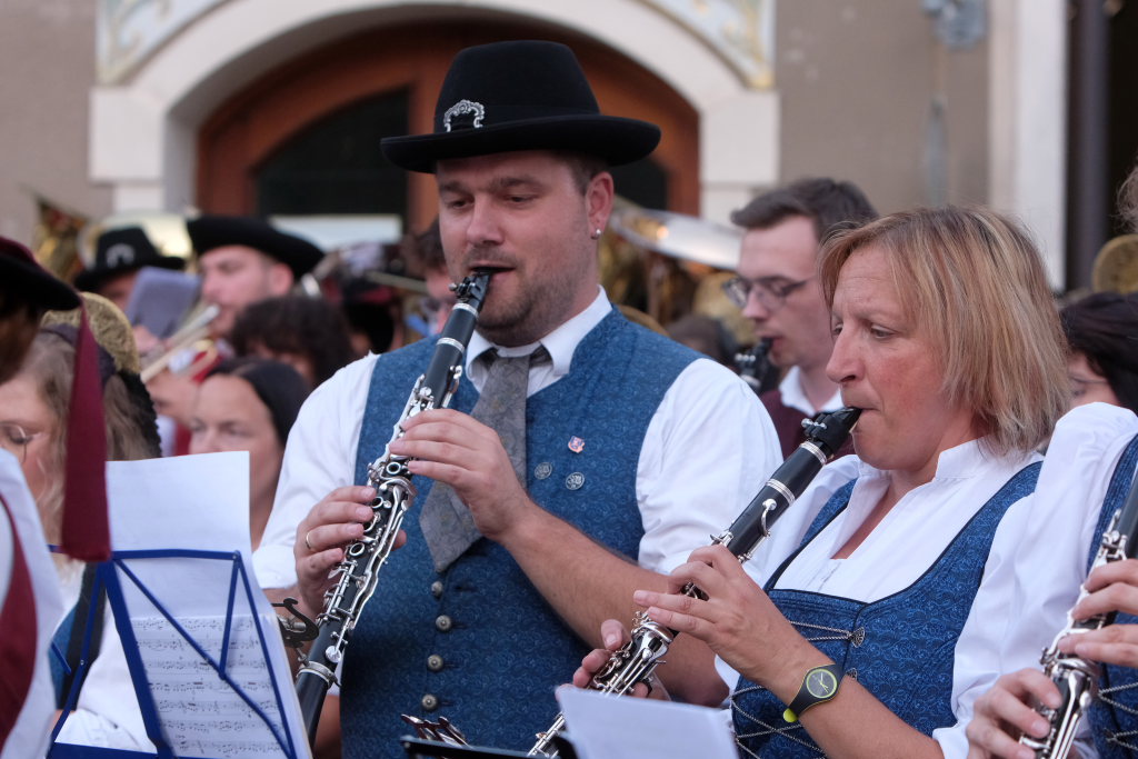 Doch danach war noch lange nicht Schluss: Dankenswerterweise ließen die Bauhofmitarbeiter nach dem Konzert die Absperrungen noch einige Zeit stehen, bis das Gewusel von Musikern und Publikum sich ein wenig beruhigt hatte, die alle in den Schlosshof zum Essen und Trinken drängten. Kurzzeitig entstand so eine wenig Fußgängerzonen-Feeling in der Innenstadt. Was weniger schön war: Nach Öffnung der Straße hielten es manche Fahrzeuglenker nicht für nötig, trotz der vielen Menschen, darunter auch zahlreiche Kinder, am Straßenrand ihr eh zu hohes Tempo – man beachte: in der Innenstadt gilt Tempo 20 – ein wenig zu drosseln.