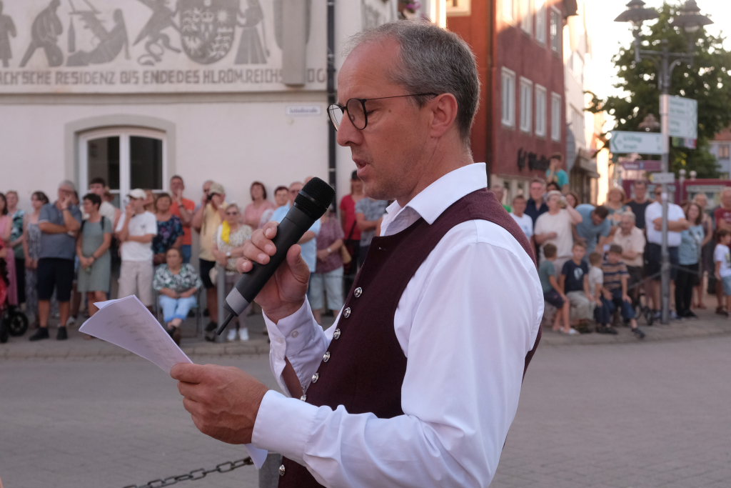 Wolfgang Grösser und Bürgermeisterin Alexandra Scherer konnten sich freuen: Am vorgesehenen Termin am Samstagabend (28. Juni) lachte wie schon den ganzen Tag die Sonne. Der Dartverein, der inzwischen schon traditionell die Bewirtung im Schlosshof übernimmt, konnte in Ruhe seine Vorbereitungen auf den großen Ansturm treffen.