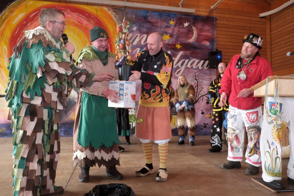 Auch Bürgermeisterin Alexandra Scherer machte der Haidgauer Narrenzunft ihre Aufwartung und übergab, begleitet von einer kurzen Ansprache in Reimform, den Zunftoberen Daniel Wassner und Peter Rösch ihr Gastgeschenk.