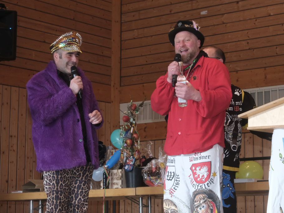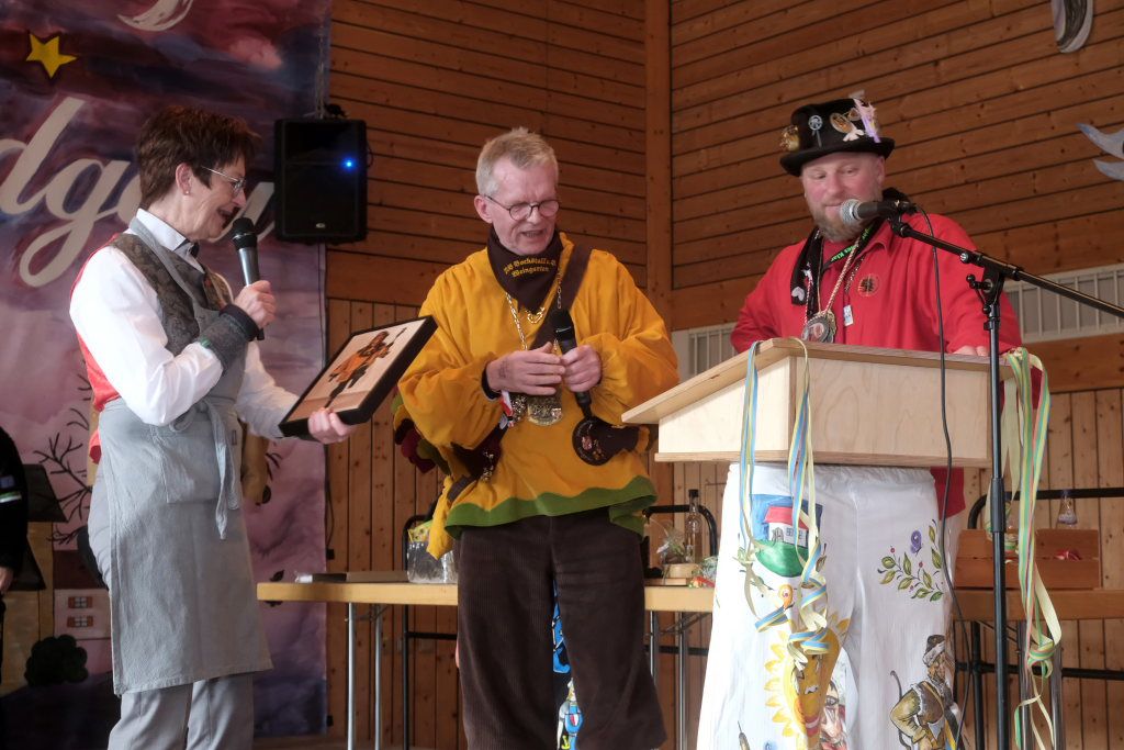 Die Alttanner Höllteufel brachten dieses Team zum Tanzen, die Zunftmeisterin Christine Adamski der Bergatreuter Narrenzunft Berengar pflegte ihre innigen Kabbeleien mit Daniel Wassner. Der Zunftmeister der Dornstadter Dora-Weibla, Andrej Niederreiter, hatte wie immer ein Gedicht als Gastgeschenk dabei. Auch bei dieser Zunft fungierten die Haidgauer als „Gette“. Die Vertreterinnen der Hoigamer Stroaßa Hup´r entschuldigten sich noch einmal für ihren Ausfall für den Zunftmeisterempfang.