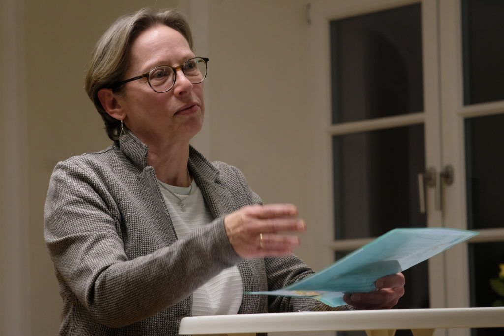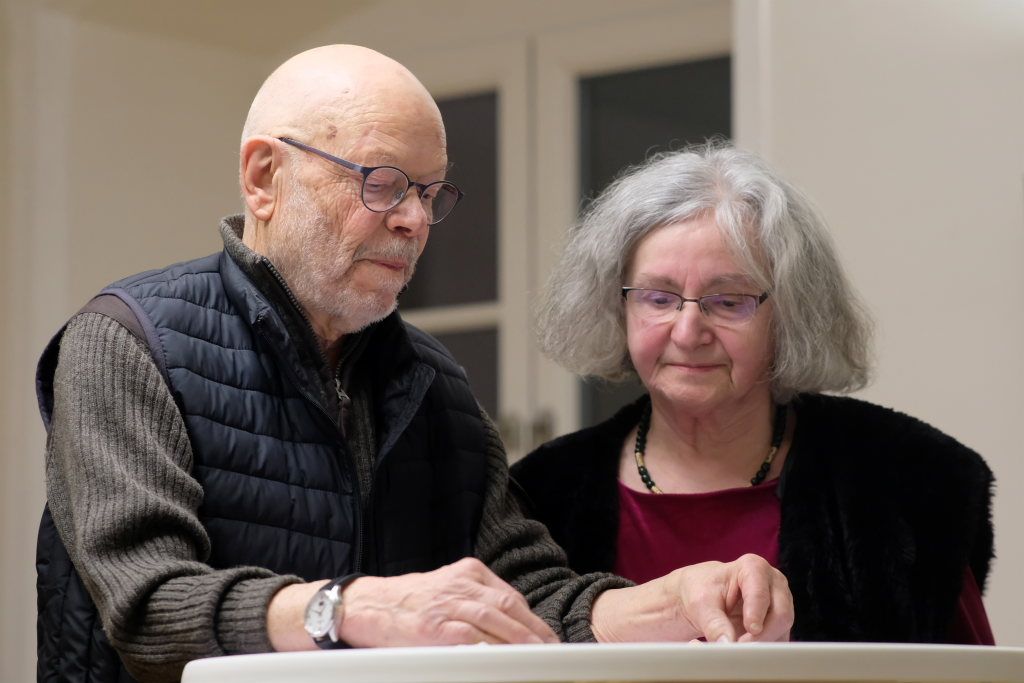 Doris Schäfer, die gemeinsam mit Christel Linge die Ausstellungen in der Stadtbücherei organisiert, begrüßte die Vernissage-Besucher im Namen der Galerie, während Klaus Schütt als Stellvertreter für Bürgermeisterin Alexandra Scherer im Namen der Stadt die „fünfte Jahreszeit“ einläutete. Philipp Kohler untermalte die Vernissage mit Stimmungsmusik auf seinem Akkordeon.
