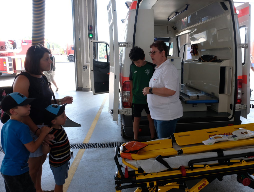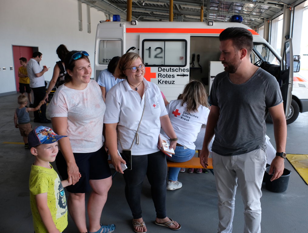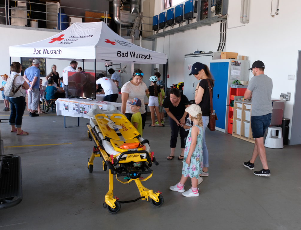 Wie es in einem echten Rettungswagen aussieht, das konnten die Kinder (und ihre Eltern) von den Sanitätern erfahren, die tagtäglich mit diesem unterwegs sind.