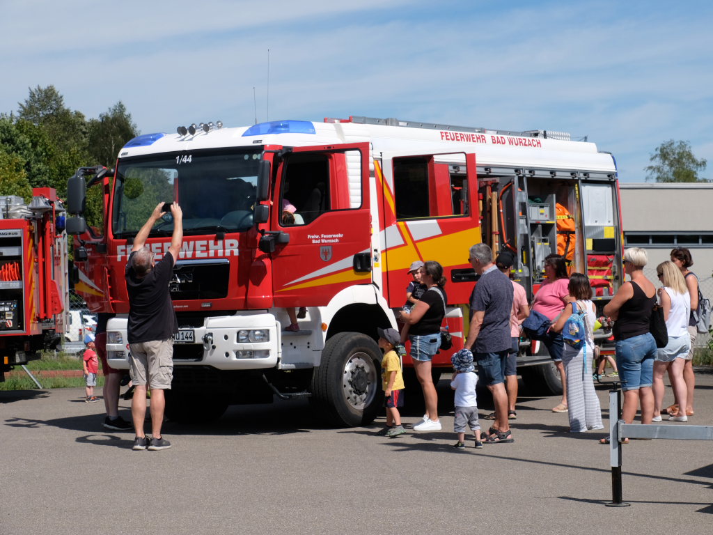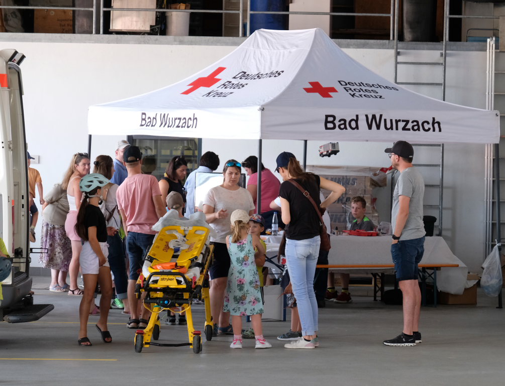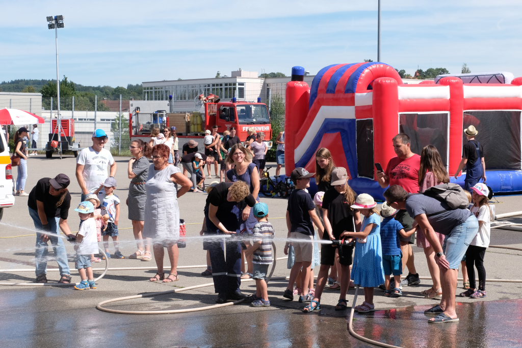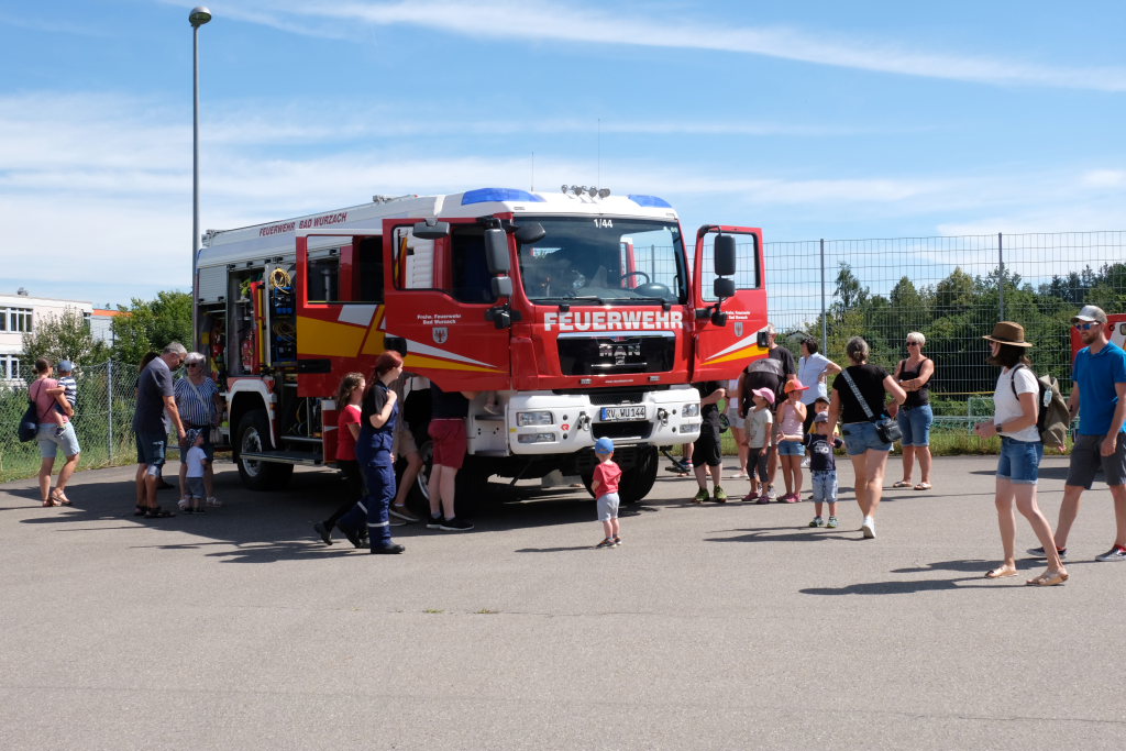 Bad Wurzach – Weil der Wetterbericht  heißes Wetter vorhergesagt hatte, hielt sich der Ansturm von Kindern und ihren Eltern beim Blaulichttag im Rahmen des Kinderferienprogrammes am und im Feuerwehrhaus zunächst  noch etwas in Grenzen.