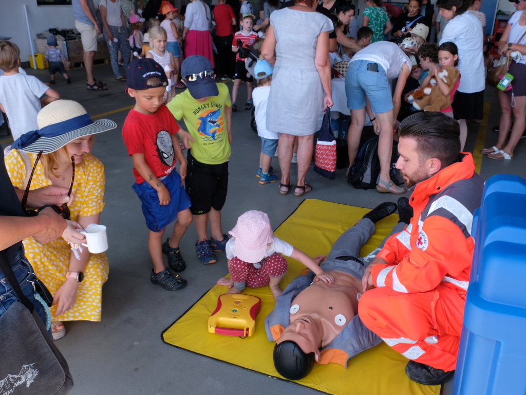 Wie der Mensch von innen aussieht und an welcher Stelle zum Beispiel  bestimmte Organe im Körper platziert sind, das konnten kleine und große Forscher an Hugo, dem Übungsmodell, austesten, in dem sie diese wie bei einem Puzzle aus- und wiedereinbauten. Gleich nebenan konnten die Kinder an einer sich lebensecht anfühlenden Puppe die Herzdruckmassage üben. Früh übt sich, was ein Meister werden will, und selbst die Kleinsten spürten, dass da etwas ganz Wichtiges passierte, schauten zu wie es die „Großen “ machten und probierten es gleich selbst aus.