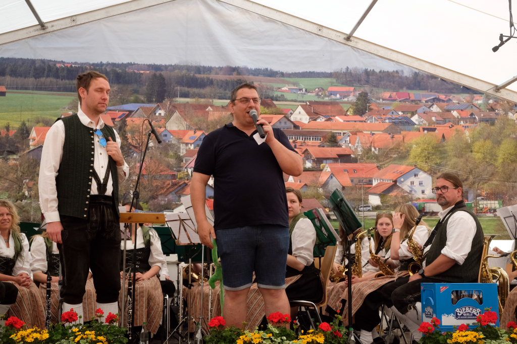 Nachdem der Musikverein Mittelbuch nach einer kurzen Umbaupause das musikalische Zepter übernommen hatte, war Gelegenheit für ein kurzes Gespräch mit Markus Riß, dem langjährigen Vorstand des Musikvereines und Organisationsleiter des Frühlingsfestes.