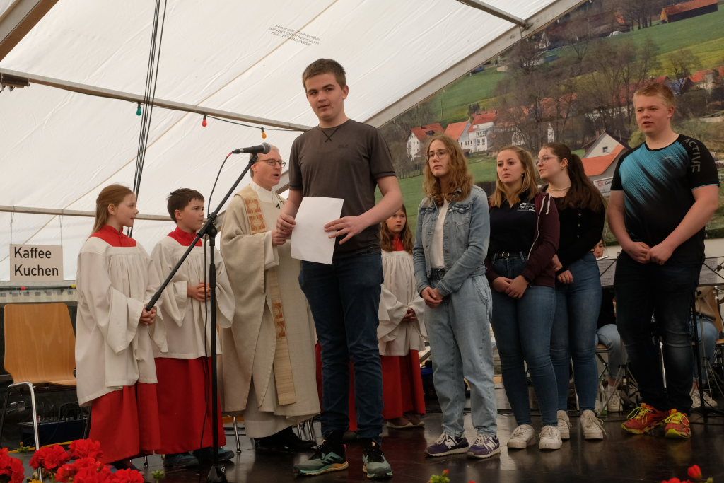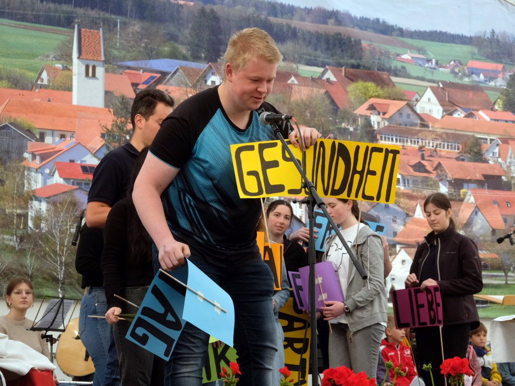 Dietmanns – Mit einem mit rund 300 Besuchern sehr gut besuchten Zeltgottesdienst, der von einem bunt gemischten Chor aus Kindern, Jugendlichen und Erwachsenen unter der Leitung von Jan Heinrich musikalisch gestaltet wurde, läutete der Musikverein Dietmanns den Finaltag seines 46. Dietmannser Frühlingsfestes ein. Zum Frühschoppen spielte an diesem Muttertagsmorgen im Anschluss der Musikverein Mittelbuch auf.