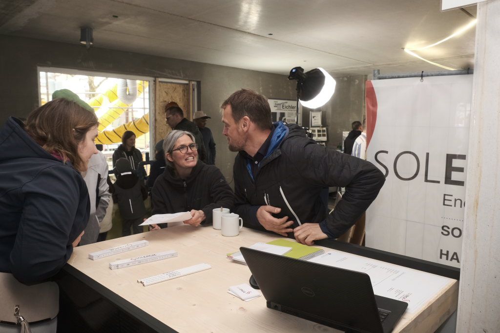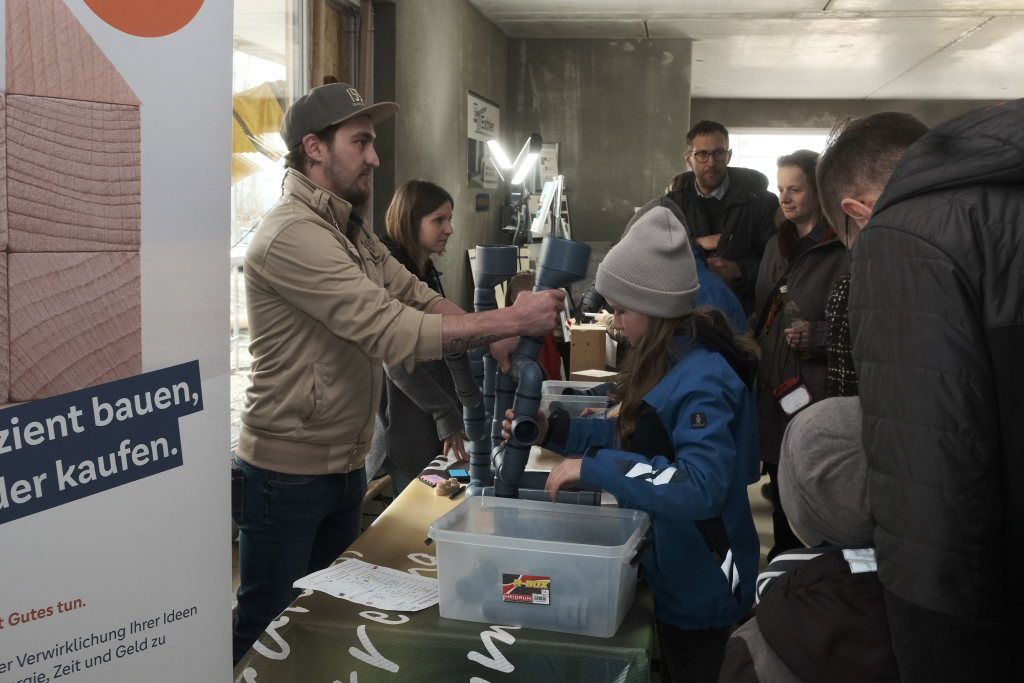 Eine Ausnahme bei den Indoor-Aktionen: Die Baustellenbesichtigung bzw. der Tag der offenen Baustelle von Wi-Se-Le (Will selbstbestimmt leben): Das Bau-Info-Zentrum, das sich und seine Kooperations-Firmen in den zukünftigen Räumen des Mehrgenerationenhauses präsentierte, erlebte einen riesigen Besucheransturm.
