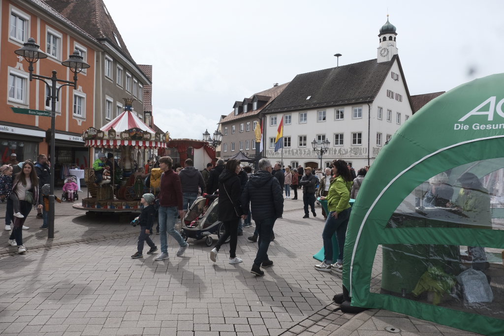Bad Wurzach – Der diesjährige Fit-Fun-Shopping-Tag hatte unter dem Motto: „Natürlich.offen“ einige Neuerungen zu bieten. Da wäre an erster Stelle die Hühner-Schaufenster-Rallye zu nennen, zu der sich rund 20 Händler in der Innenstadt zusammengetan haben. Bei dem Preisrätsel – es galt die gefundenen Hühner zu zählen – lockten Preise im Wert von 1000 €.