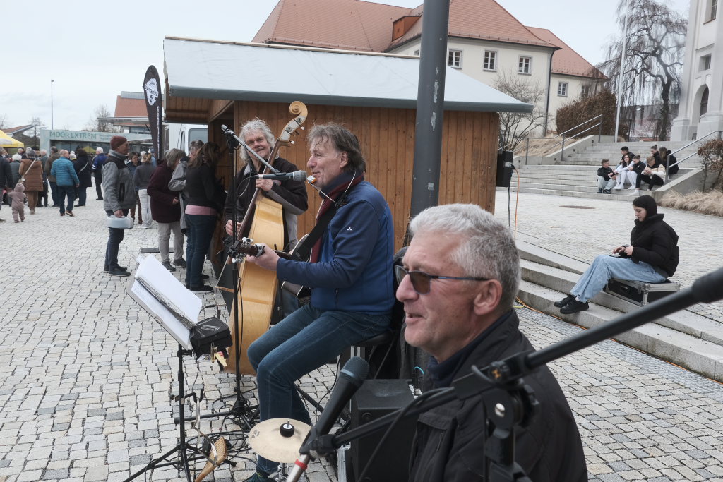 Auch beim Bauernmarkt auf dem Klosterplatz gab es Neuerungen. Neben den altbewährten Ständen mit Wurstwaren der Metzgerei Seif, heimischem Honig von Josef Hart oder diversen Käsespezialitäten von Oli´s Käseallerlei sowie Ständen mit Kunst- und Holzhandwerk boten die Schäfereigenossenschaft Finkhof aus Arnach und die Floristin Rosi Schneider erstmals ihre Dienstleistungen an. Neben dem Puppentheater (nicht nur für Kinder), das gleich zwei verschiedene Stücke spielte, gab es auch für die Erwachsenen auf dem Klosterplatz mit der Band „Halb so schlimm“ noch einen musikalischen Hochgenuss.