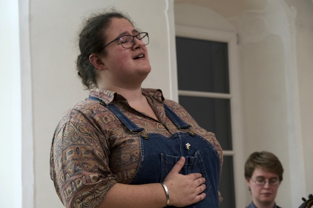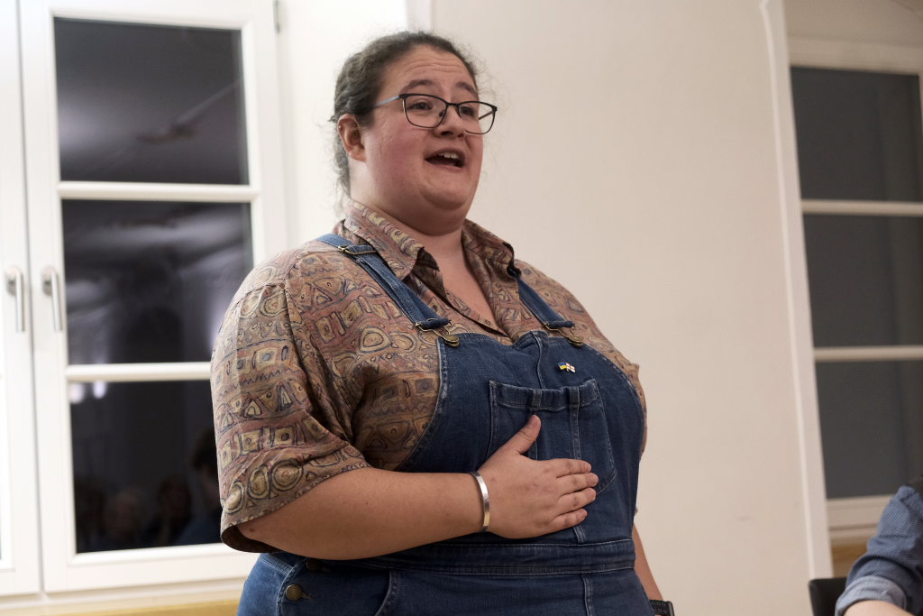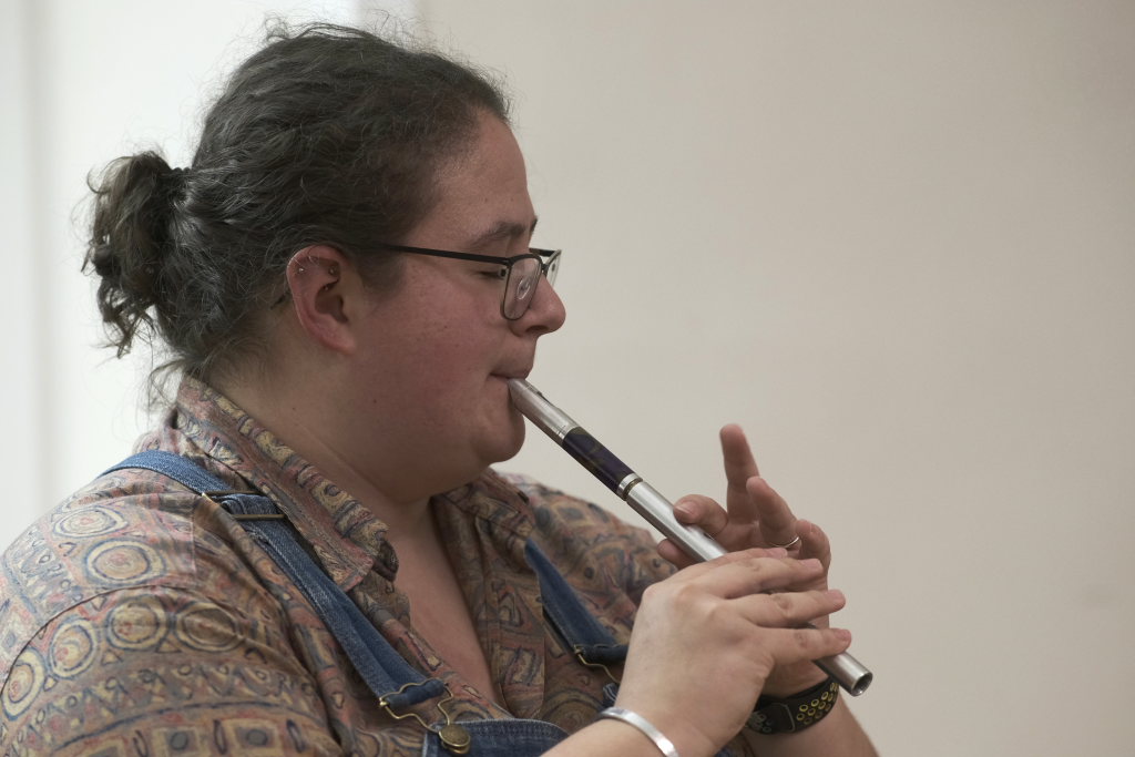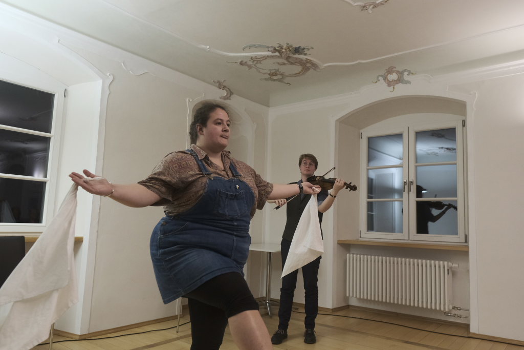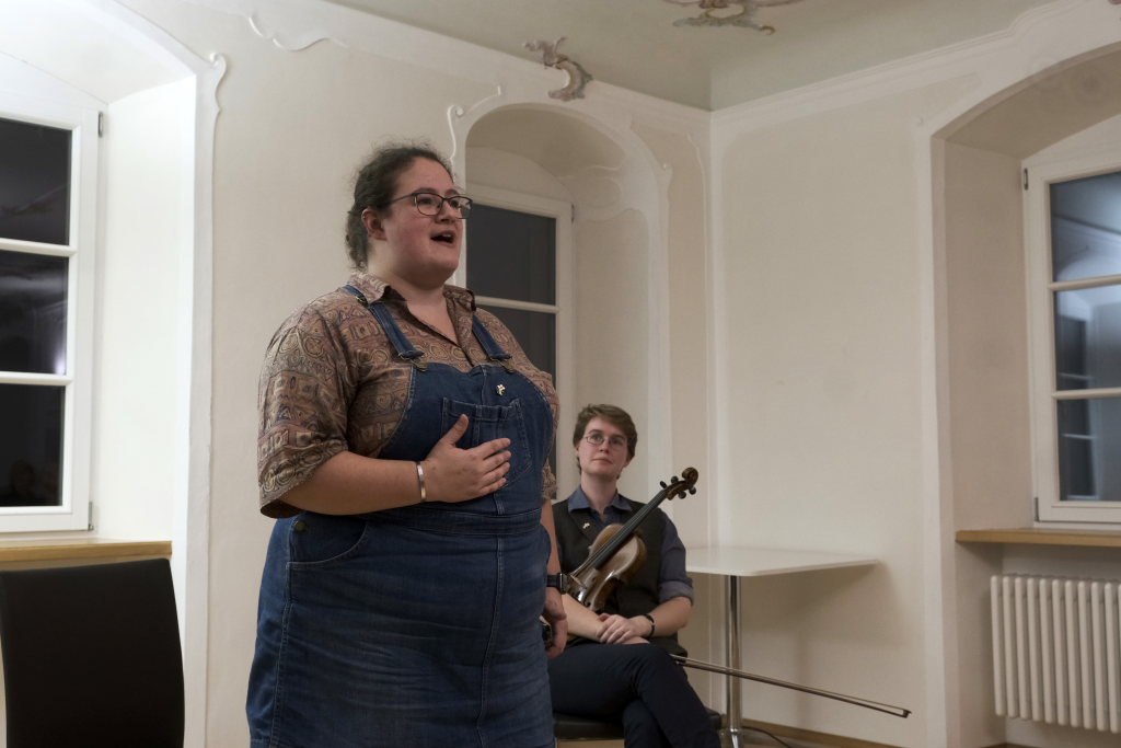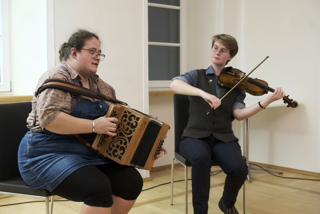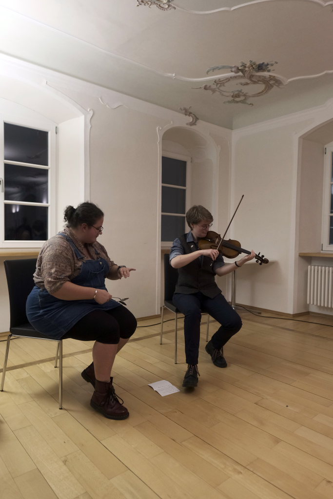 Ob mit Sologesang von Anne Blin-Bolt ohne Instrumentalbegleitung, ob bei einem reinem Instrumental mit Melodeon und Geige, die Beiden zeigten bei jedem Stück, mit wieviel Herzblut sie ihrer Profession nachgehen. Und das nicht nur instrumental. Annie Blin-Bolt ließ auch bei einem Tanz das Parkett des Kapitelsaals erzittern. „Der Morris-Dance ist ein traditioneller englischer Tanz, der seit dem 16. Jahrhundert getanzt wird”, erklärte Annie Blin-Bolt nach dem Konzert. „Ich habe einen Morris-Tanz vorgeführt, bei dem Taschentücher und Glöckchen Teil der Performance sind.“ Der Tanz heiße „To Town with a Pushang“, der von den BELLES AND BROOMSTICKS-Morris-Dancers im Jahre 2020 auf Guernsey kreiert wurde. Diese Art Tanz konnten Interessierte von den beiden Musikerinnen, die auf Einladung des Biberach Partnerschaftsvereines in der Gegend weilten, am nächsten Tag bei einem Workshop im Gemeindehaus von St. Martin in Biberach lernen, erklärte eine Vertreterin des dortigen Partnerschaftsvereines.