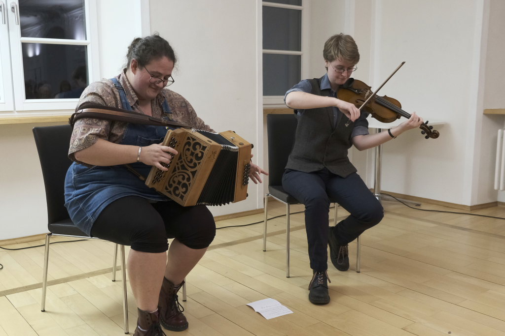 Gisela Rothenhäusler, die Begrüßung, Vorstellung und den Dank an die Musikerinnen übernommen hatte, war mit dem Besuch des Konzertes mehr als glücklich; kurz vor Beginn mussten noch weitere Stühle herbeigeschafft werden. Bei der Verabschiedung sagte sie: „Die zwei haben gezeigt, wie begeistert sie von den Volksweisen der Insel sind.“