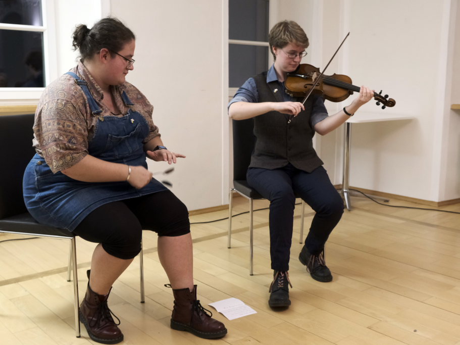 Viel Spaß hatten die beiden Musikerinnen Annie Blin-Bolt und Bethany Geoghegan gemeinsam mit dem Publikum bei ihrem Auftritt in Bad Wurzach.