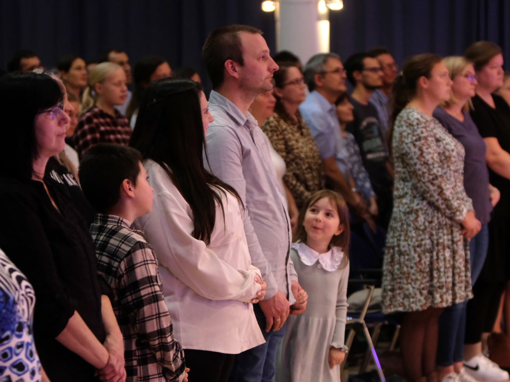 Viele, sehr viele Menschen, in jeglichem Alter, wollten die geistlichen Lieder von Miroslav Chrobak, die er gemeinsam mit seiner Frau Jeannette und seiner Band zelebrierte, hören. Pastor Daniel Brown, der die Musiker und Konzertbesucher nach dem ersten Lied mit einem Gebet willkommen hieß, freute sich über den vollbesetzten Saal, ehe Miroslav Chrobak mit einer kleinen Geschichte vom Weihnachtsmarkt in seine Glaubenswelt einführte: „Bei einem Auftritt auf dem Weihnachtsmarkt sangen plötzlich einhundert Menschen mit, die aus verschiedenen christlichen Glaubensrichtungen kamen.“ Dies bestätigte Chrobak in seiner Ansicht, dass Musik die Menschen mit Gott verbindet. „Er bringt uns zusammen, er bringt uns näher, Gott ist allgegenwärtig.“