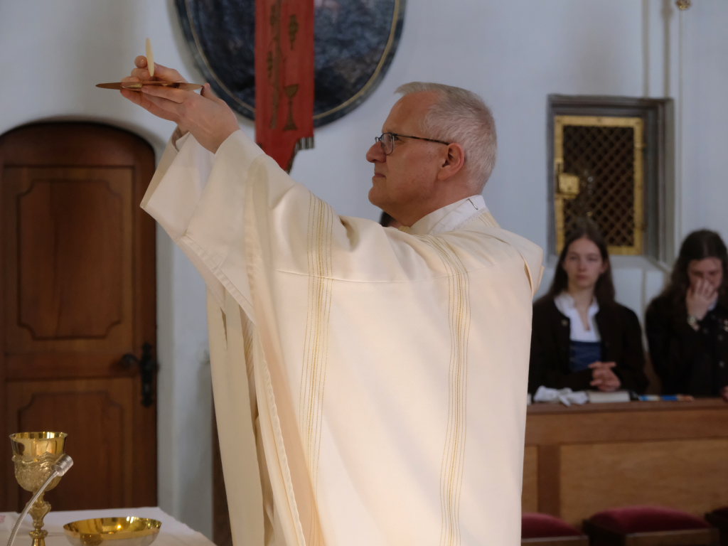 In ihrer Predigt ging Pastoralreferentin Anna-Katharina Merk auf dieses Evangeliumswort ein. Die Jünger waren nach Jesu Tod verunsichert: Wie geht es weiter? Drei Jahre haben sie ihr Leben an Jesus Christus ausgerichtet. Sie gehen dahin, wo sie herkommen, nach Galilää, und tun das, was sie gelernt haben, Fischen. Manchmal sind wir in ähnlichen Situationen: Wenn sich plötzlich etwas geändert hat und wir noch nicht wissen, wie es weitergeht. Oder wenn wir uns angesichts erschreckender Nachrichten fragen, wie es auf der Welt weitergehen soll oder wie wir mit persönlichen Krisen umgehen. Das Fischen bleibt erfolglos, was bestimmt am Stolz der Jünger genagt hat. Mut machen kann uns: Wenn wir nicht mehr weiterwissen, fängt es für Gott erst richtig an. Auf Jesu Wort hin werfen die Jünger das Netz nochmal aus – eine Anweisung, die für einen erfahrenen Fischer eigentlich unsinnig ist. Sie fangen unglaublich viele Fische. Jesus lädt sie ein, mit ihm Fisch und Brot zu essen „Kommt her und esst!“ Die Jünger spüren, dass es Jesus ist – sie haben schon so oft miteinander gegessen.