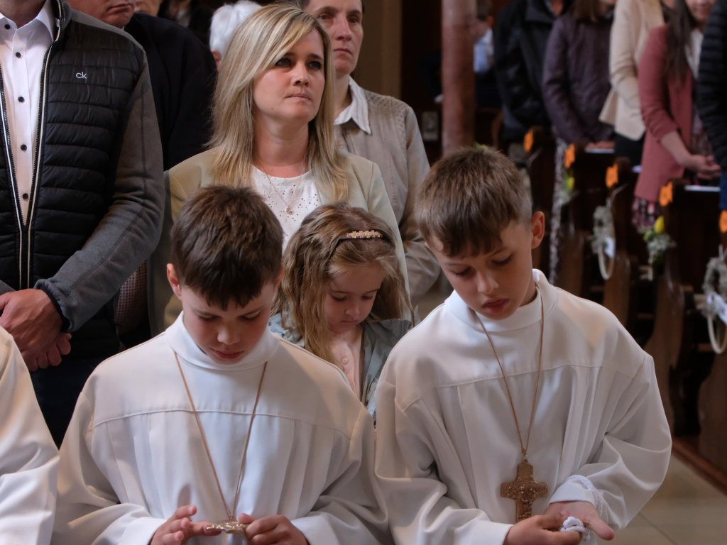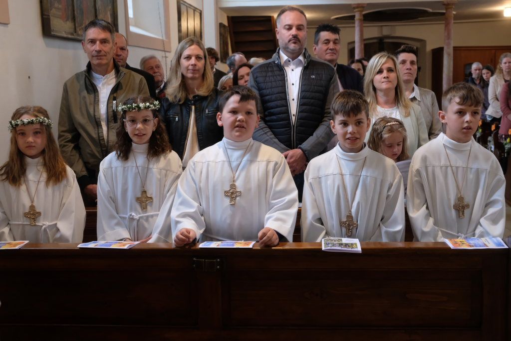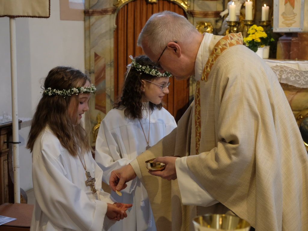 Fünf Hauerzer Kommunionkinder erhalten das Sakrament in der Pfarrkirche Dietmanns gespendet