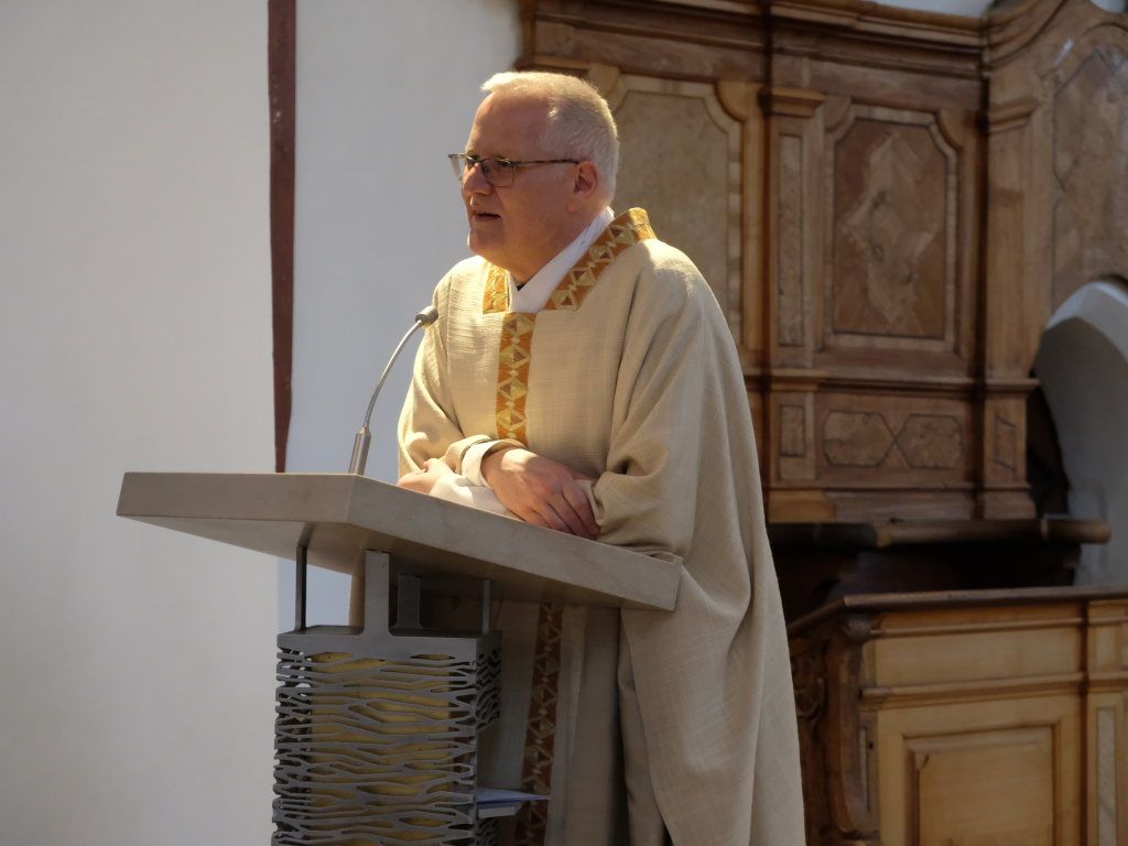 Pfarrer Maier im Gespräch mit den Kommunikanten