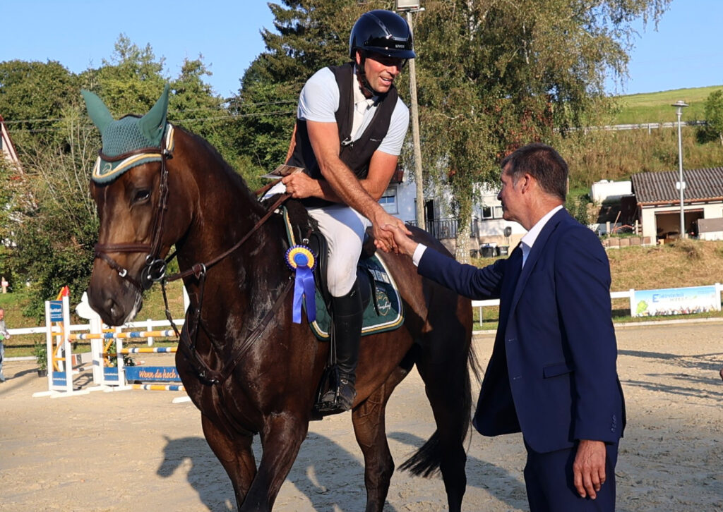 Der Abgeordnete gratuliert Pferd und Reiterin.