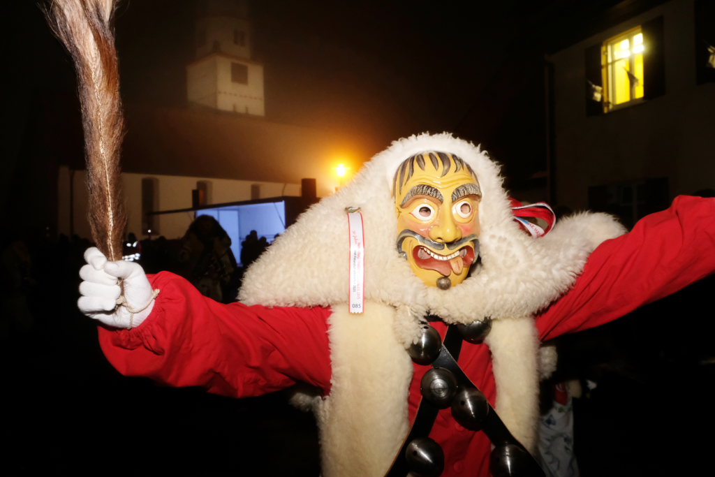 Dass die Eintürner Zunft Mitglied Bayrisch Schwäbischen Fastnachtverbandes (BSF) ist, lässt sich auch an der Teilnahme der Narrenzunft Buchenberg ablesen, die mit Tobel-Teufel und Kreuz-Hexa die doch größere Anfahrt auf sich genommen hatte. Den schaurig-schönen Abschluss des Zuges bildeten die Albmahre, eine kleine unabhängige Zunft aus Biberach, deren gespenstisch anmutende Masken sehr gut zu einem Nachtumzug passen.