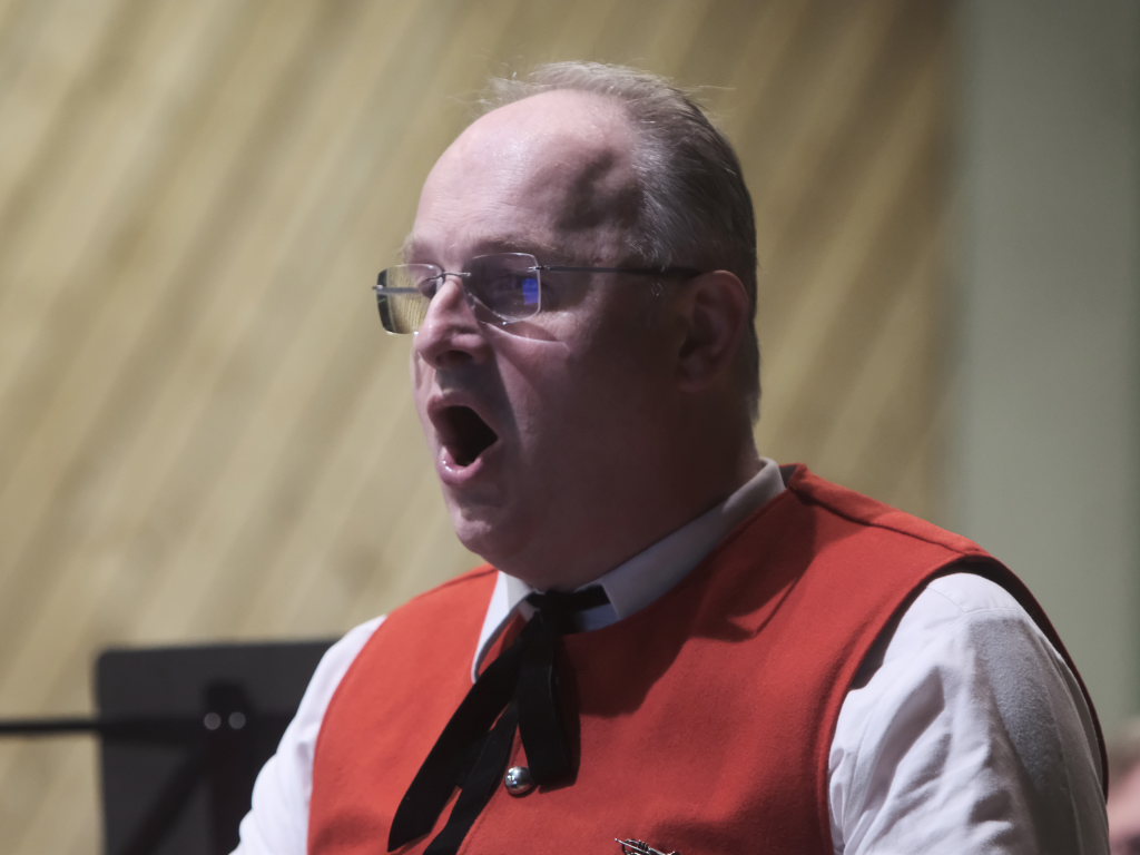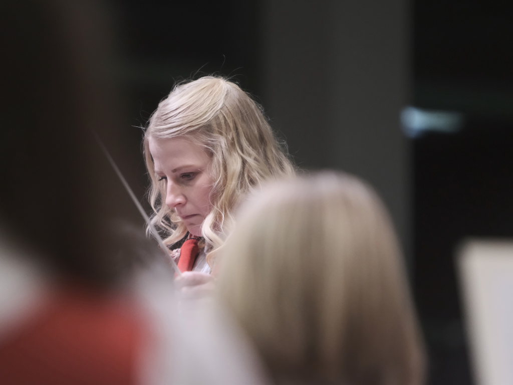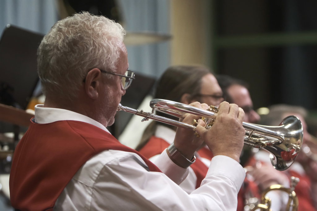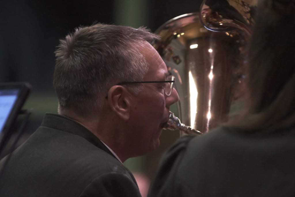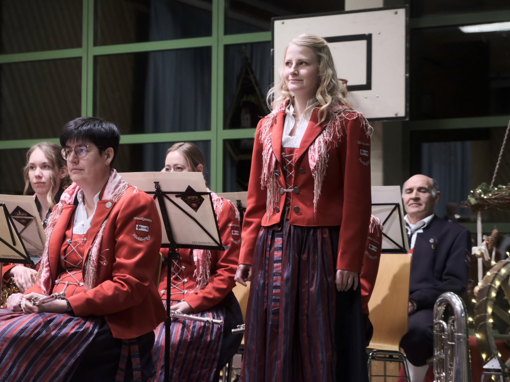 Mit dem Konzertmarsch „Arsenal“ des belgischen Komponisten Jan van der Roost starteten Silke Emhart und ihre Musiker in das Konzert am Vorabend des ersten Advents. Der Komponist hatte das würdevoll klingende Musikstück zum 50jährigen Jubiläum des Blasorchesters des belgischen Eisenbahnarsenals geschrieben.