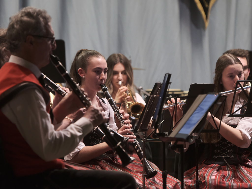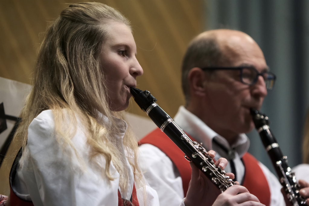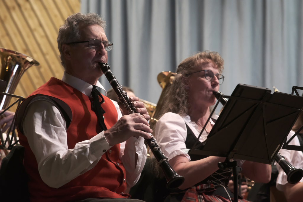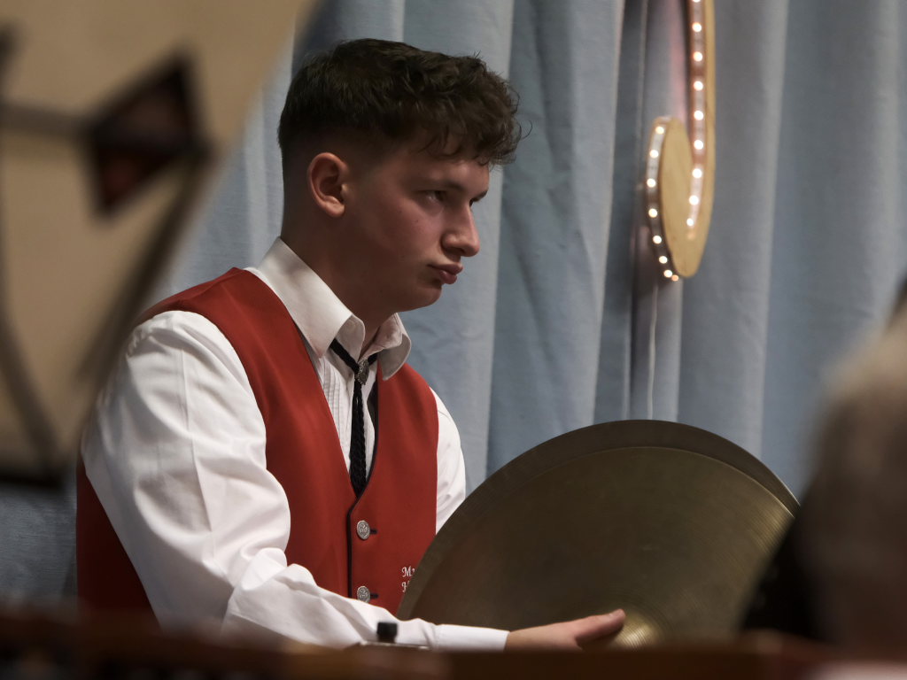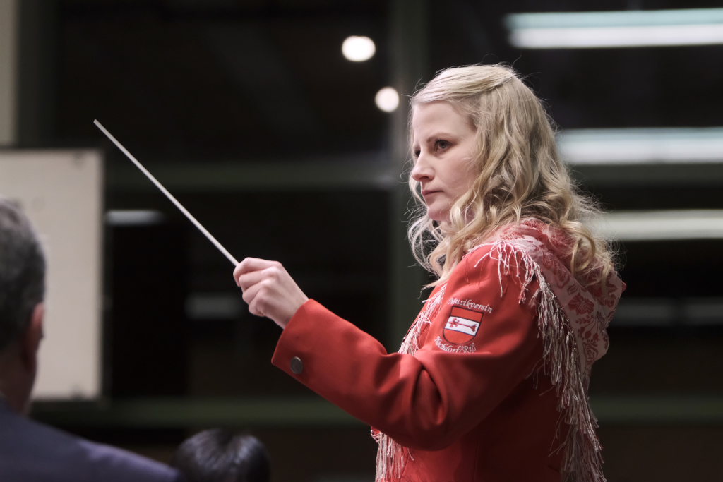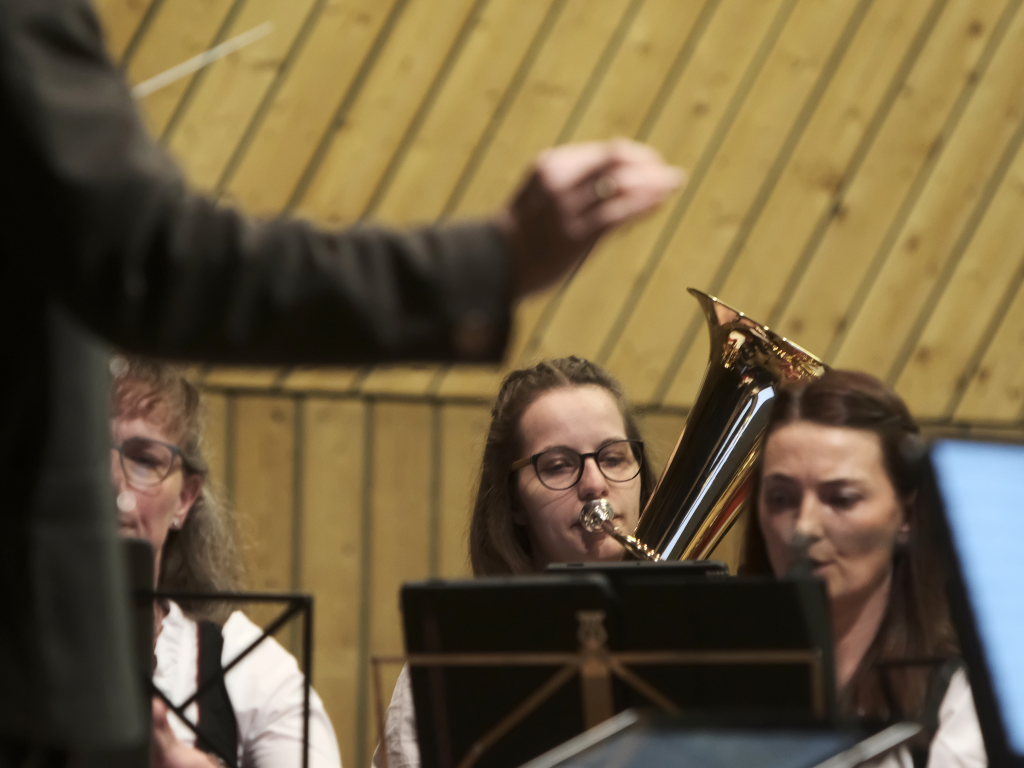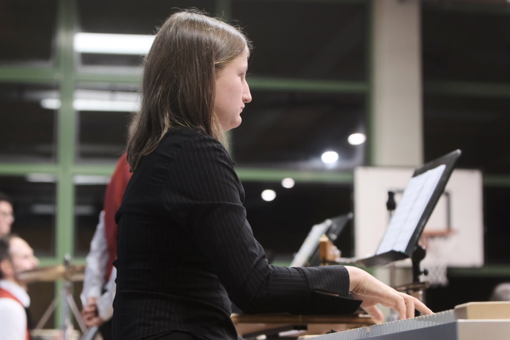 Sehr emotional wurde es auch beim nächsten Stück: „Bohemian Rhapsody“ von Queen ist ein musikalisches Denkmal, das sich deren leider viel zu früh verstorbenen Spiritus rector selbst gesetzt hatte. Es gilt als der bedeutendste Song in der Geschichte des Rock. Zum einen wäre da seine ungewöhnliche Form: Er hat keinen Refrain, sondern besteht aus den Abschnitten Einleitung, Ballade, Gitarrensolo, Hardrock und Schluss. Arrangeur Philip Sparke versuchte, in seiner Version von Bohemian Rhapsody so nahe wie möglich am Original zu bleiben. „Jede Note, jeder Akkord wird Sie durch eine Palette von Gefühlen führen, von der Melancholie bis zur Euphorie,“ versprach Marina Gütler dem Publikum – und sollte recht behalten. Besonders aufregend wurde das Stück auch für die junge Theresa Merk, die mit ihrem E-Piano bei ihrer Konzertpremiere die markanten Klavierpassagen des Stückes beisteuern durfte.
