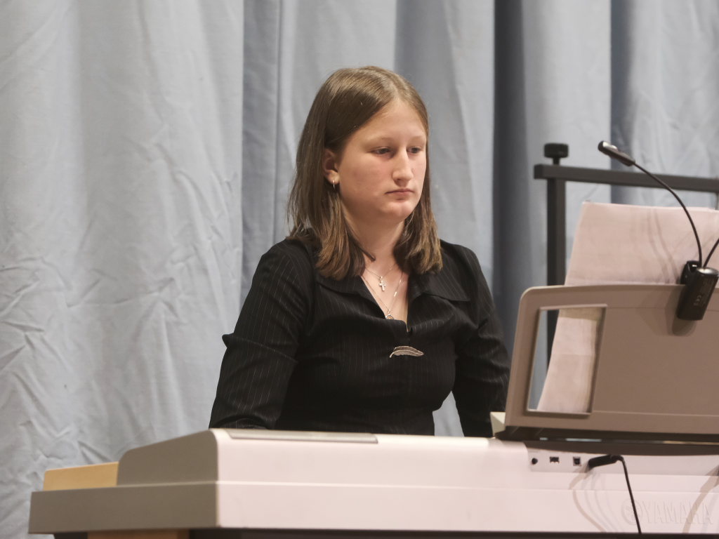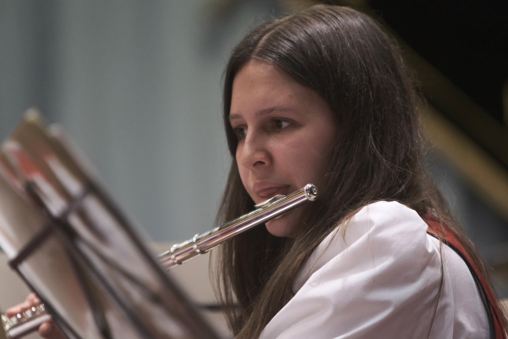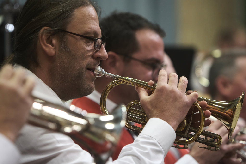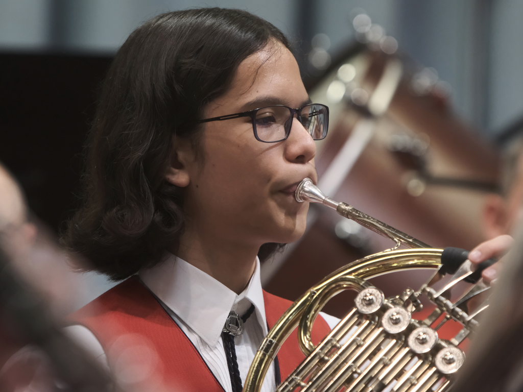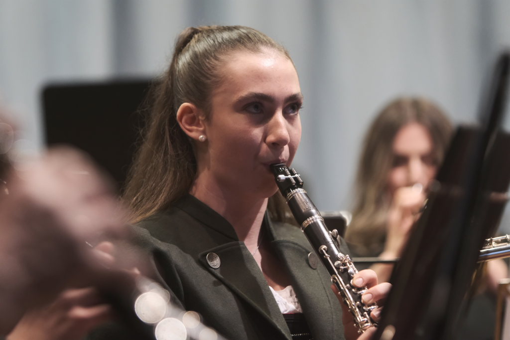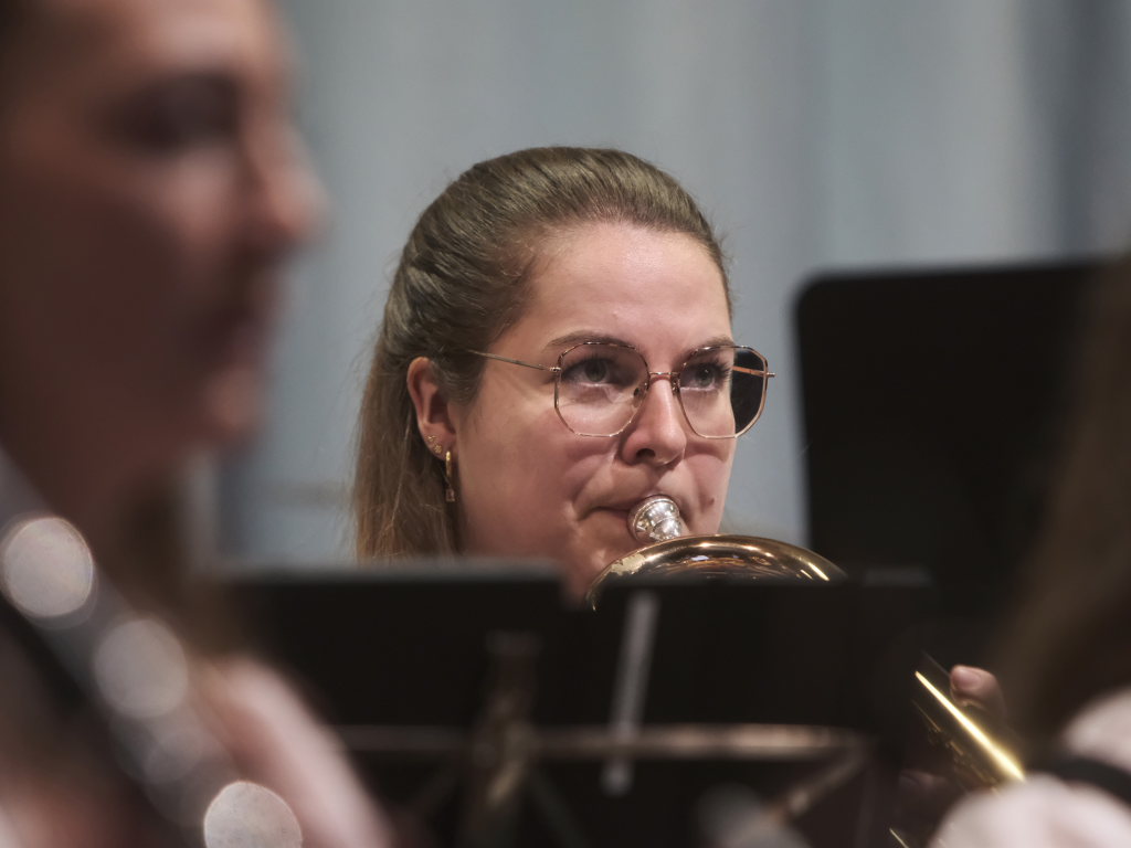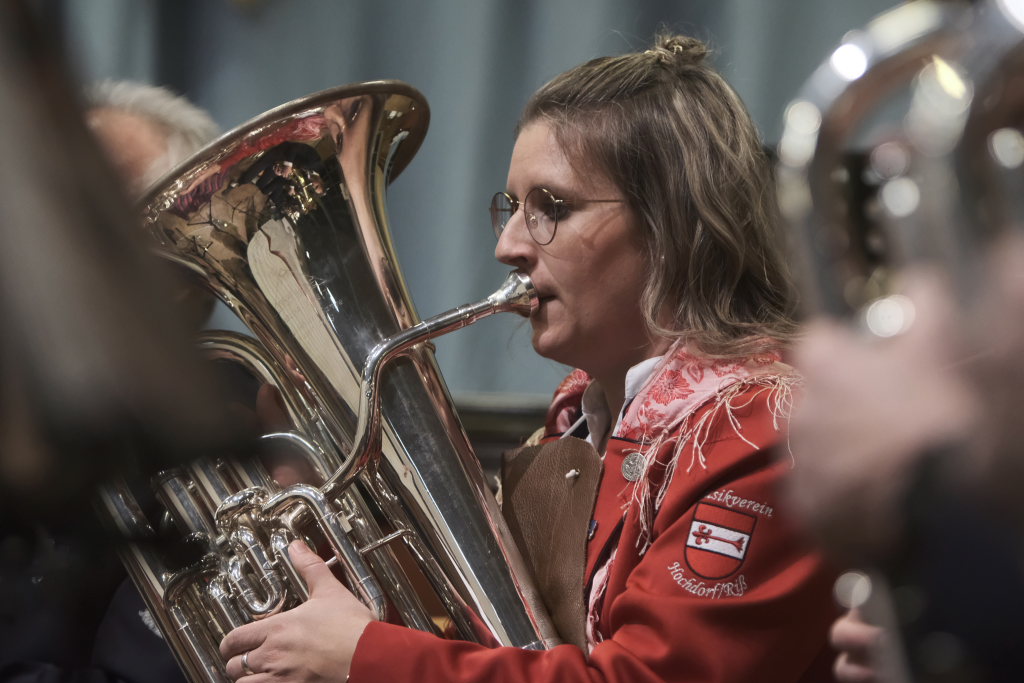 Sehr emotional wurde es auch beim nächsten Stück: „Bohemian Rhapsody“ von Queen ist ein musikalisches Denkmal, das sich deren leider viel zu früh verstorbenen Spiritus rector selbst gesetzt hatte. Es gilt als der bedeutendste Song in der Geschichte des Rock. Zum einen wäre da seine ungewöhnliche Form: Er hat keinen Refrain, sondern besteht aus den Abschnitten Einleitung, Ballade, Gitarrensolo, Hardrock und Schluss. Arrangeur Philip Sparke versuchte, in seiner Version von Bohemian Rhapsody so nahe wie möglich am Original zu bleiben. „Jede Note, jeder Akkord wird Sie durch eine Palette von Gefühlen führen, von der Melancholie bis zur Euphorie,“ versprach Marina Gütler dem Publikum – und sollte recht behalten. Besonders aufregend wurde das Stück auch für die junge Theresa Merk, die mit ihrem E-Piano bei ihrer Konzertpremiere die markanten Klavierpassagen des Stückes beisteuern durfte.