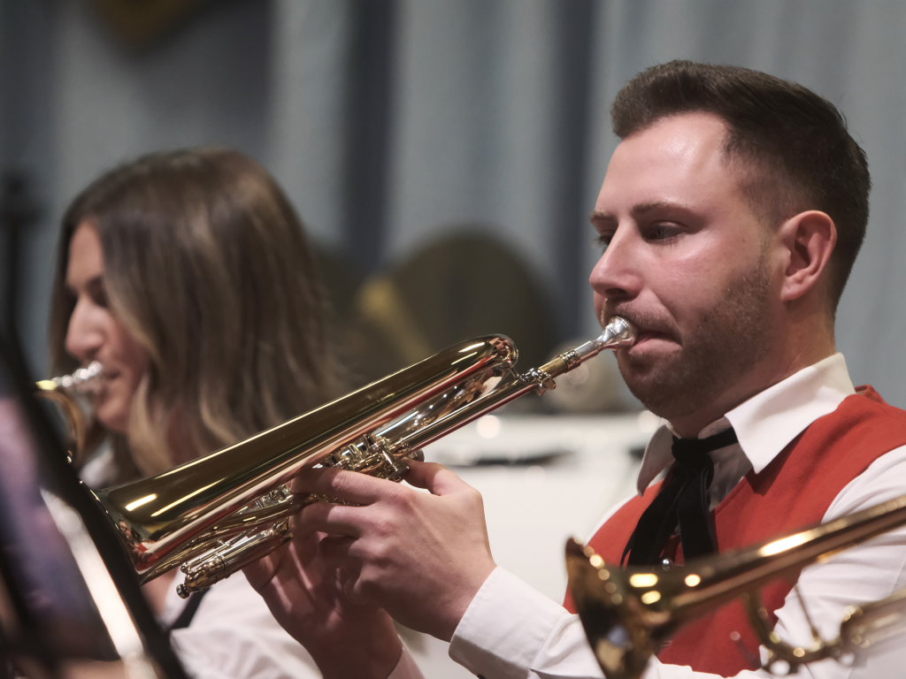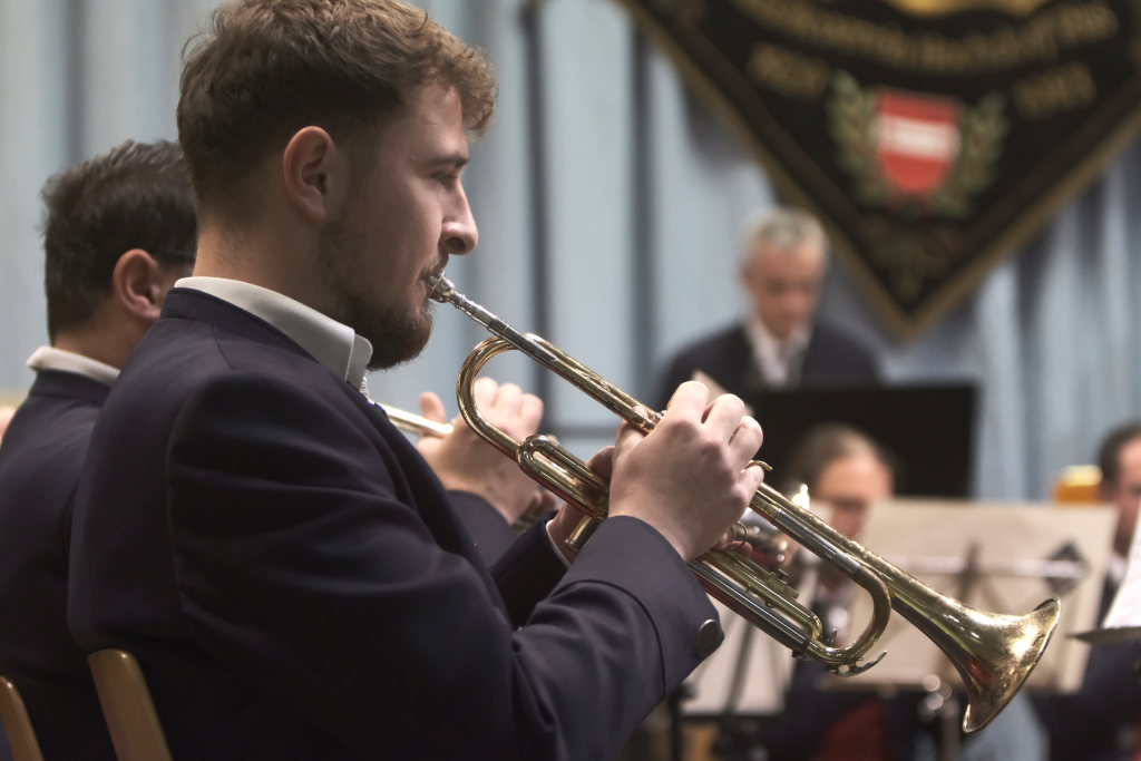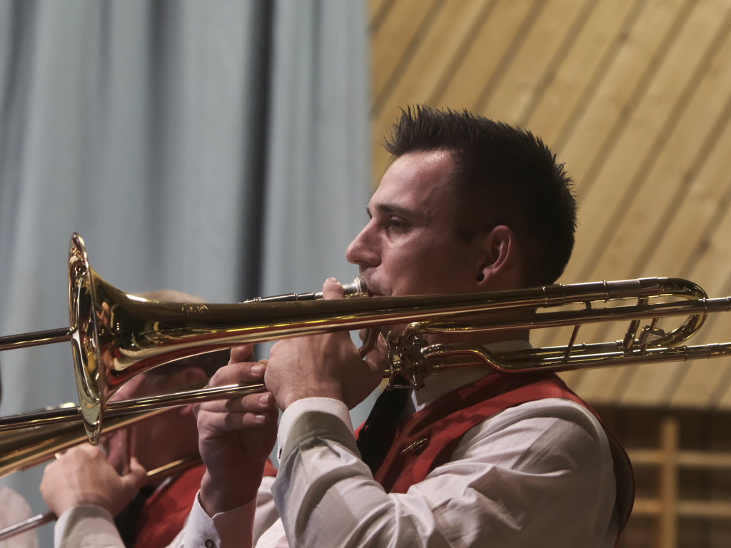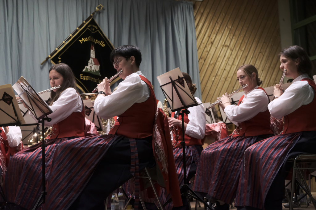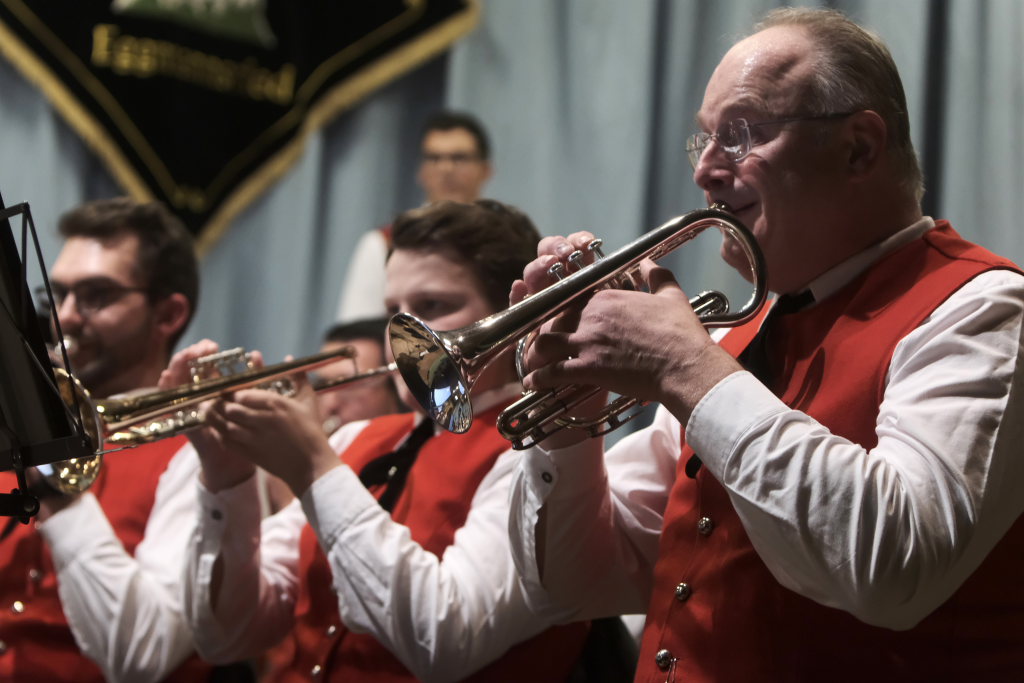 Mit „Into the empire“ des österreichischen Komponisten Michael Geisler, einer beliebten Eröffnungsfanfare für Blasorchesterkonzerte, begannen Bernd Butscher und seine Eggmannsrieder Musiker ihren Konzertteil. Mit feierlichen Fanfarenklängen und einem marschartigen Mittelteil – inklusive eines strahlenden Trompeten-Solos – kehrt es am Ende wieder mit einer Variation des Themas zur Eröffnungsfanfare zurück.