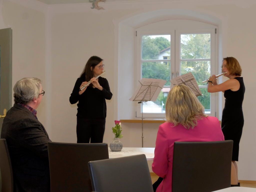 Wie es für eine „richtige“ Vernissage gehört, wurde die Feier musikalisch begleitet: von dem Flöten-Duo Sabine Wächter und Maria Goldhofer von der Stadtkapelle.