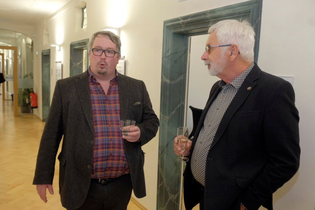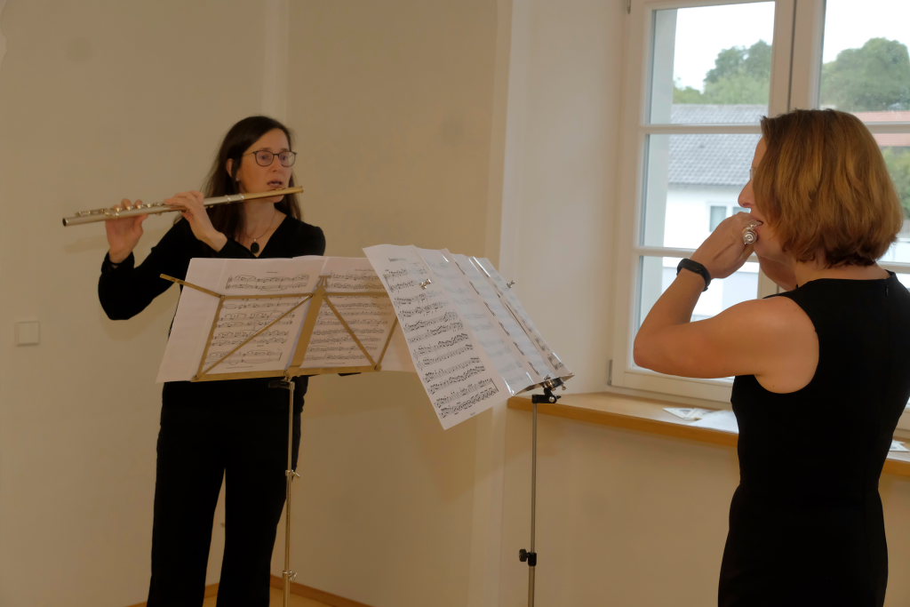 Wie es für eine „richtige“ Vernissage gehört, wurde die Feier musikalisch begleitet: von dem Flöten-Duo Sabine Wächter und Maria Goldhofer von der Stadtkapelle.