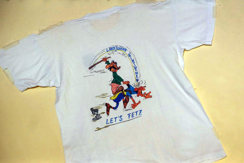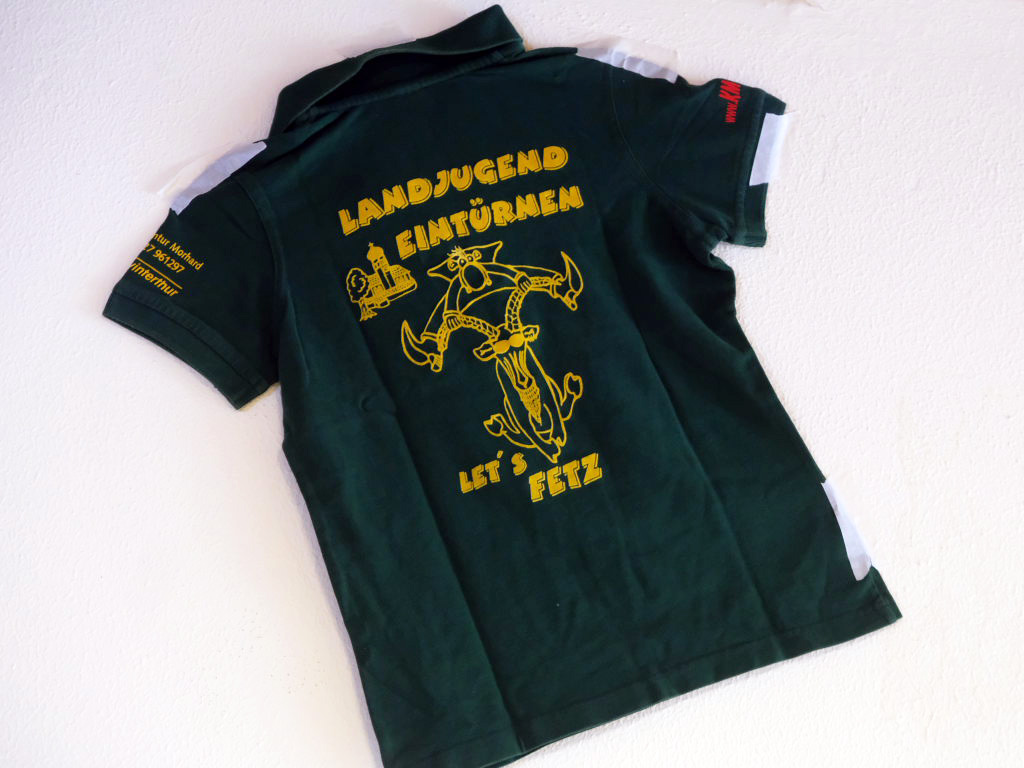 Heutiges Let´s-Fetz-Shirt mit Unterschriften der aktuellen Mitglieder.
