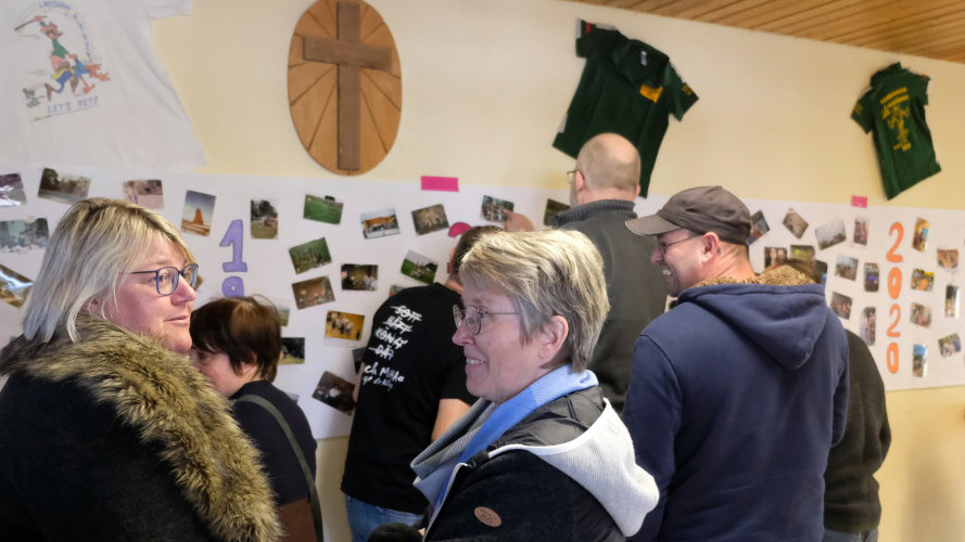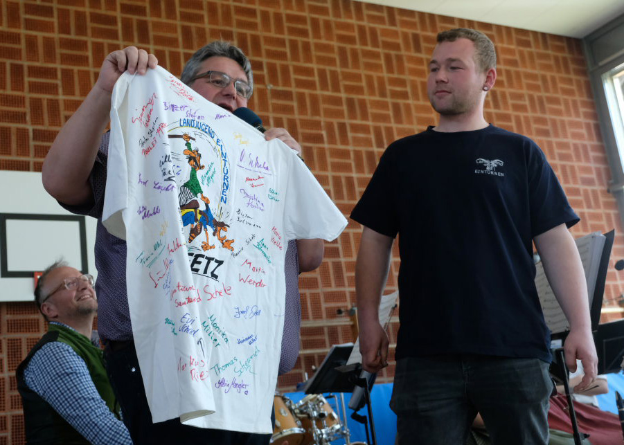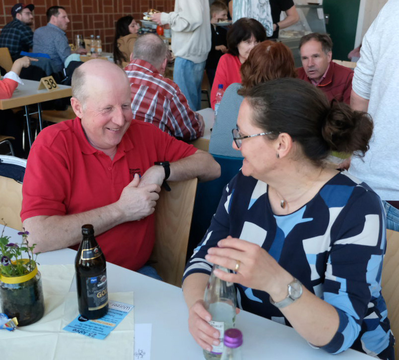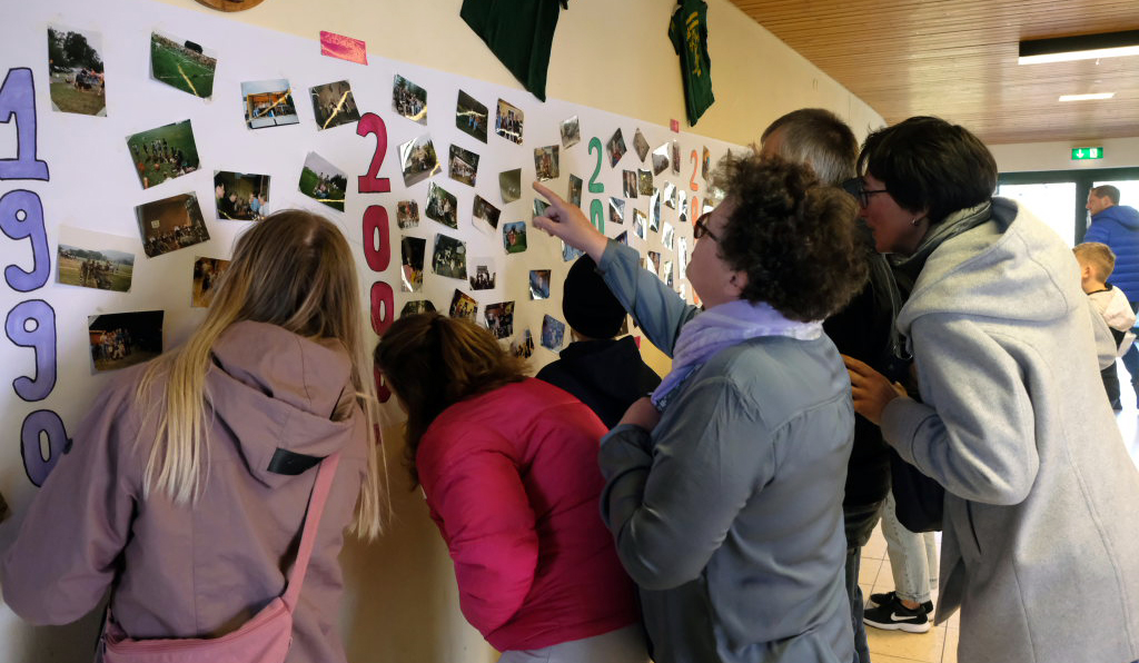 Dem Aufruf nach Bildern oder alten T-Shirts aus ihrer aktiven Zeit waren viele gefolgt und so war im Foyer der Halle eine stattliche Galerie zu bewundern, die dann auch fast die ganze Zeit umlagert war. Jeder brachte sein Wissen mit ein, wer denn da auf den Bildern zu sehen war. Und so lichtete sich rasch so manches Rätsel.