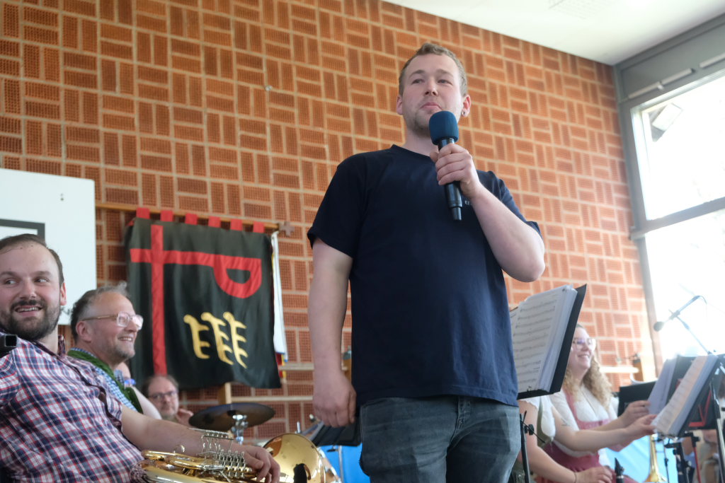 Die erste Landjugendgruppe wurde demnach vom damaligen Ortspfarrer Fritzenschaft 1946 gegründet (Ende 1945 wurden dazu die ersten Gespräche geführt). Er scharte die jungen Menschen um sich, um sie in dieser schweren Zeit wieder zum Leben zu animieren und um den Gemeinsinn zu fördern. Diese Gruppe firmierte unter dem Namen KLJB Katholische Landjugend-Bewegung. Leupolz freute sich in diesem Zusammenhang darüber, dass die beiden über der Bühne angebrachten Fahnen aus dieser Zeit noch existieren und von der Landjugend in Ehren gehalten werden. Denn diese stammen ja noch aus der Zeit, als es das Bundesland Baden-Württemberg noch gar nicht gab. Allerdings ruhten die Gruppenaktivitäten nach dem Weggang von Pfarrer Fritzenschaft einige Zeit.
