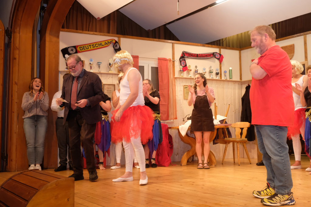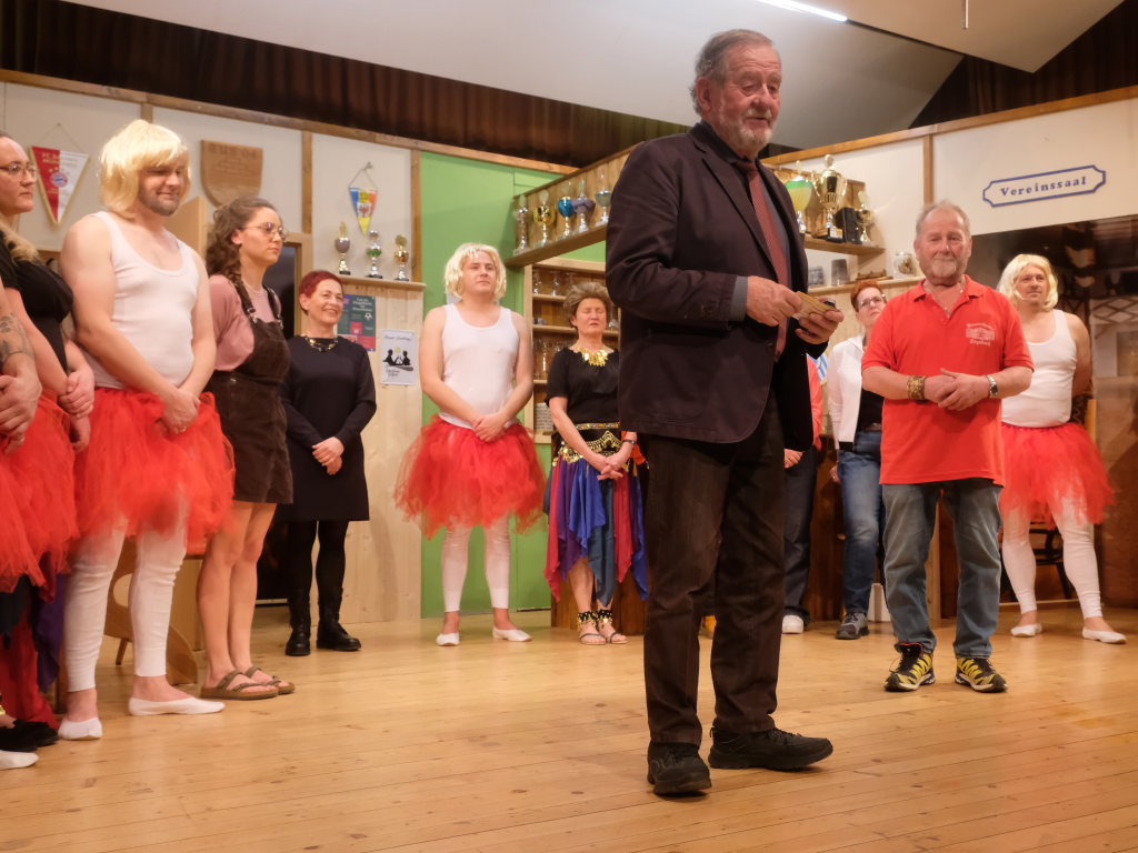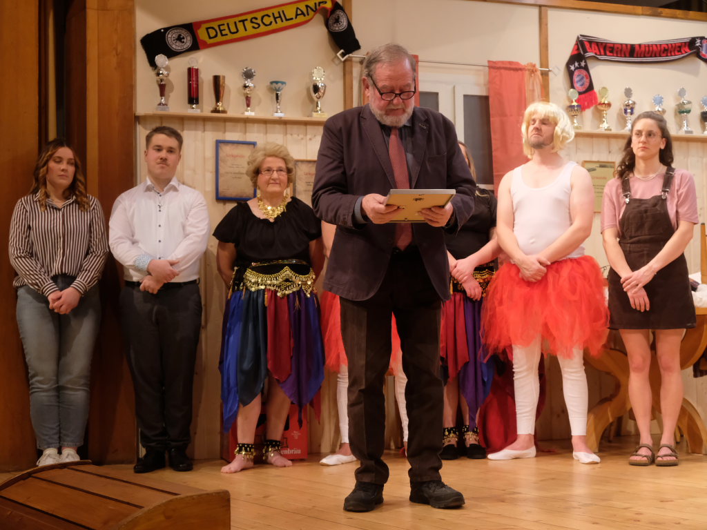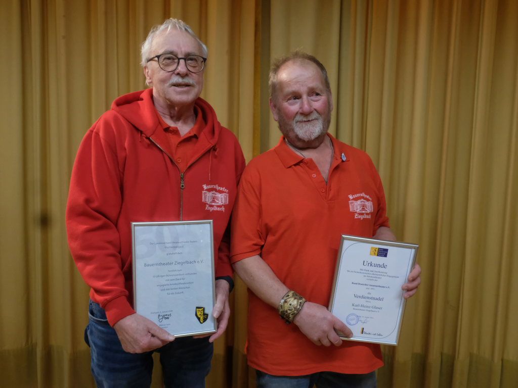 Rolf Wenhardt verkündete, dass der Ruf des Bauerntheaters Ziegelbach auch bis nach Berlin durchgedrungen sei, was natürlich mit der Person von Karl-Heinz, genannt Charly, Glaser zu tun habe, der vor 25 Jahren die Regie von Robert Bischofberger übernommen hatte. Deswegen habe er die Ehre, diesem nun die Verdienstmedaille des Bund Deutscher Amateurtheater samt Urkunde zu überreichen.