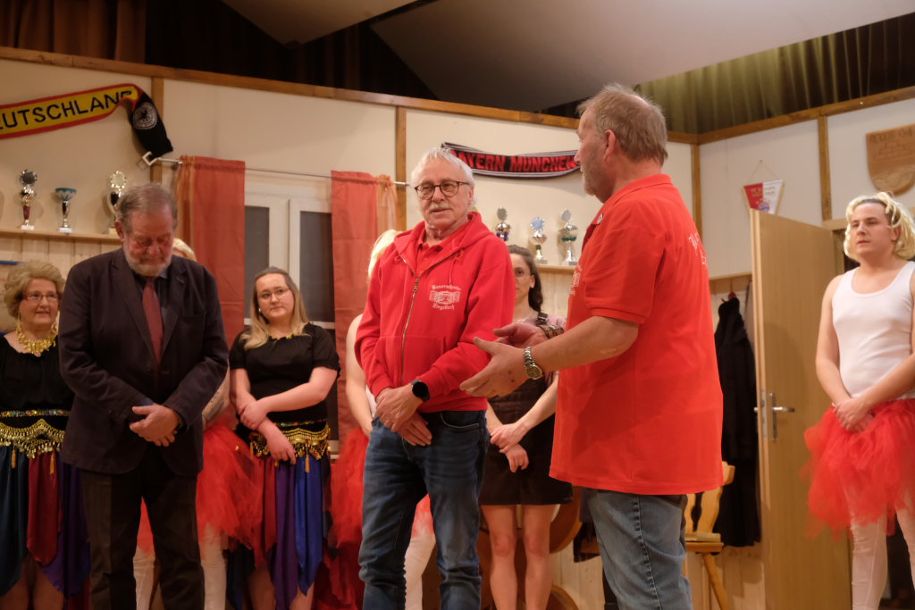 Ziegelbach – Am Ende der ersten Aufführung des aktuellen Stückes „TuS04 Ziegelbach im Showfieber“ im neuen Jahr gab es große Ehrungen für Akteure des Theaters, aber auch für den Verein selbst.