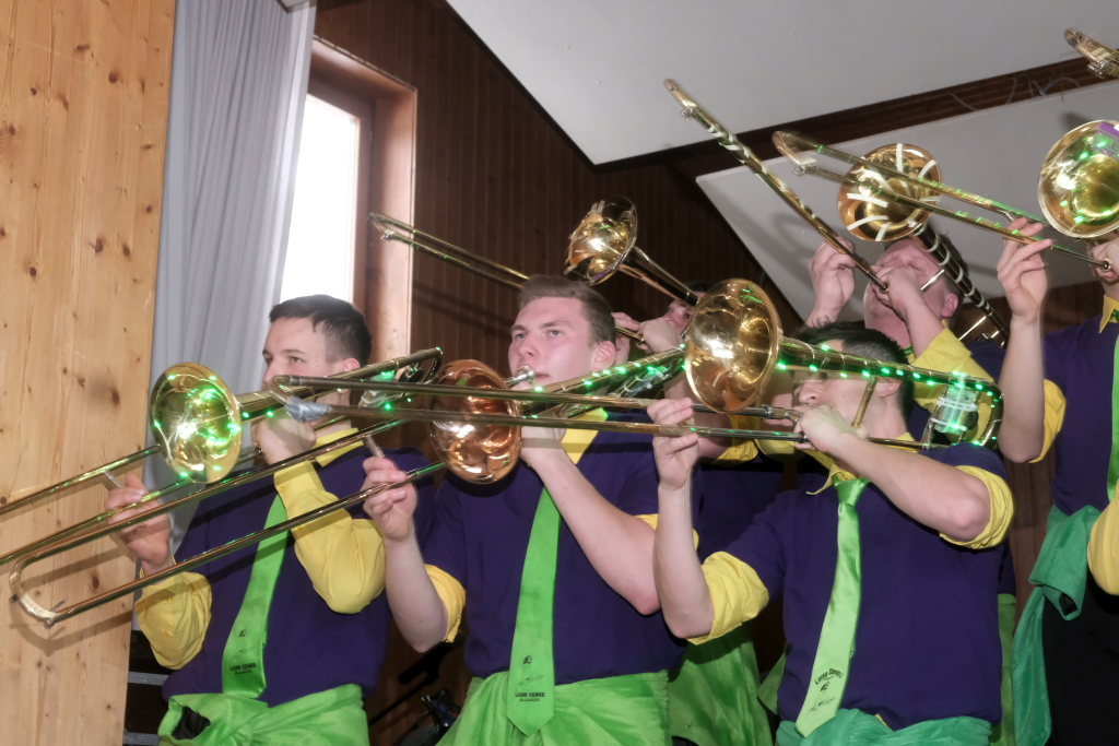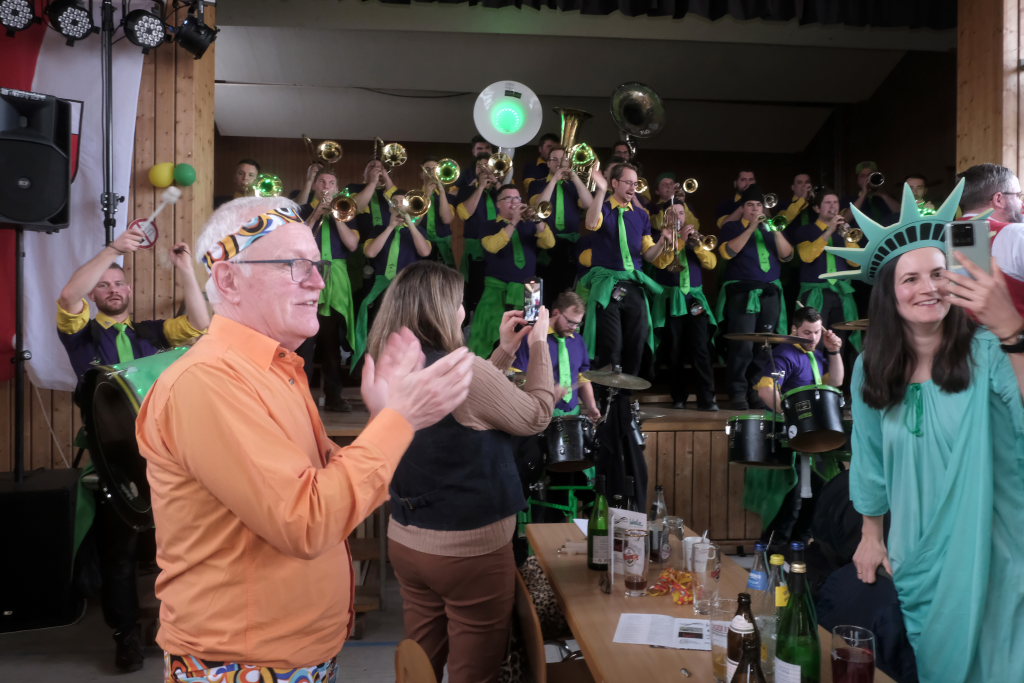 Und die volle stimmliche Unterstützung erhielten die mit zahlreichen Musikern aus der Großgemeinde gespickten Allgaier Long Dongs, als sie bei ihrem Auftritt zum musikalischen Ausklang des dritten Arnacher Zunftmeisterempfangs die beiden Beatles-Evergreens “Let it be” und “Hey Jude” anstimmten. Was für eine Guggenmusik wie eine wirklich ungewöhnliche Stückauswahl anmutet, entpuppte sich vor allem letzteres als absoluter Partyhit, der die Arnacher Musikanten an den Stimmungshöhepunkt bei ihrem Show- und Stimmungsabend erinnerte.