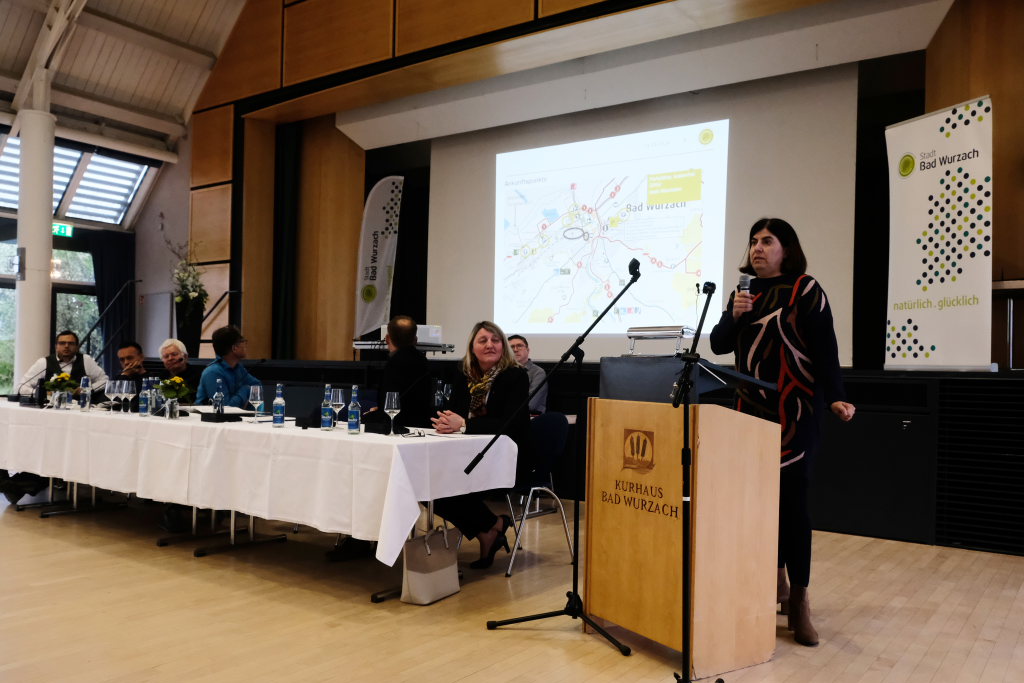 Johanne Gaipl (Leiterin Bad Wurzach-Info; Bild) sagte mit Blick auf die Frage „Wie komme ich da hin?“: „Wir fangen bei dem Betriebskonzept ja nicht bei Null an.“ Die Stadt habe eine gute Parkplatzinfrastruktur, aber man hoffe, dass nicht alle mit dem Auto kommen. Das Wanderwegenetz führe beim Turm vorbei, auch der Radweg rund ums Ried. Sie zählte in diesem Zusammenhang die touristische Infrastruktur auf: Kurbetrieb, Moorlehrpfad und ab Herbst das Kurhausrestaurant „Torfstecher“.