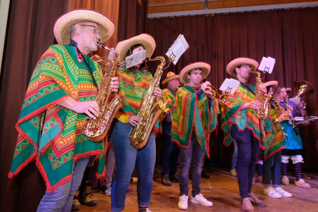 Wie es nach einem Fest der Chadaloh beim Aufräumen zugeht, präsentierte die Rütmus-Gruppe der Zunft, die dabei aufzeigte, mit was für Gerätschaften es möglich, ist Musik zu machen. Da wurden Regentonnen zu Großen Trommeln umfunktioniert, Bierkisten und Biertische lieferten den besonderen Sound. Das Highlight aber war das Hupkonzert mit Fanfarensound. Für die Zugabe hatten sich die Jungs und Mädchen der Gruppe um Vizezunftmeister Peter Rösch zusätzlich noch etwas ganz Besonderes einfallen lassen – was man einem Teleskop-ähnlichen Abflussrohr für unterschiedliche Töne durch Trommeln entlocken kann, indem man die Länge variiert, Chapeau!