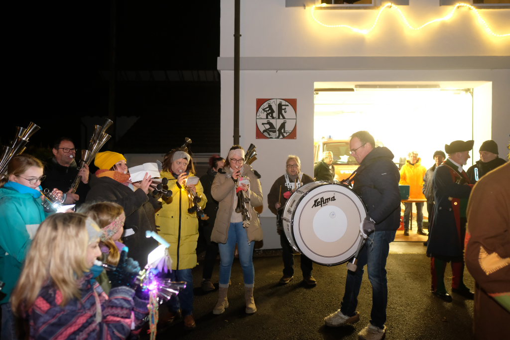 Der Zunftmeister bedankte sich danach noch bei allen an der Organisation des Fasnetsauftaktes Beteiligten, besonders bei Ortsvorsteherin Ernestina Fick, die die Narren immer kräftig unterstützt. Auch der Feuerwehr fürs Absperren der Straße und die Bewirtung sowie den Stroßa Hup´r für die musikalische Umrahmung galt sein Dank.