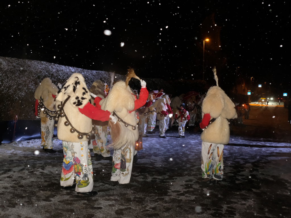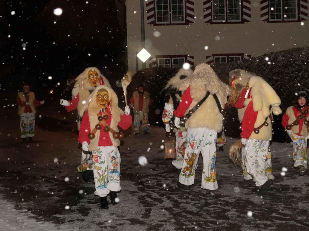Haidgau – Traditionell startete die Haidgauer Narrenzunft Chadaloh mit Wago und Wolfsleib, Hugibold, Pebo und dem namensgebenden Chadaloh am Dreikönigstag nach dem Angelus-Läuten mit dem „Kuhschwanzlüften“ in die Fünfte Jahreszeit, in diesem Jahr erstmals von einer Haidgauer Fasnetsmusi unterstützt.