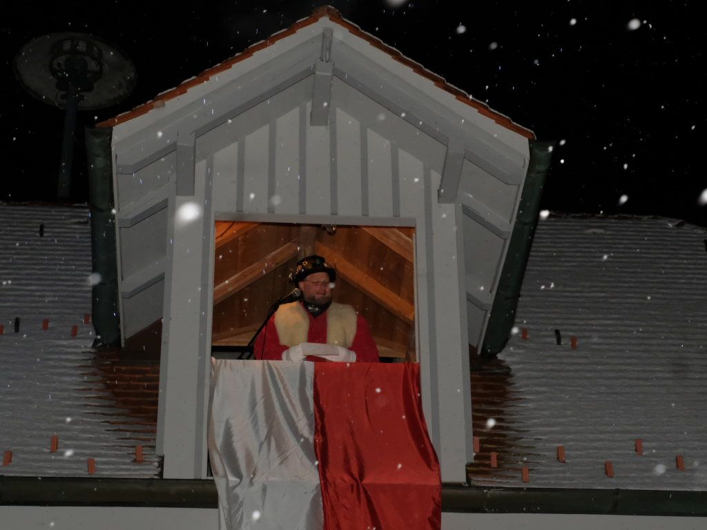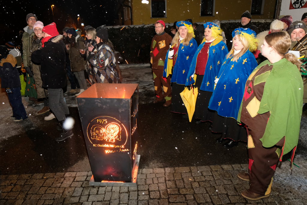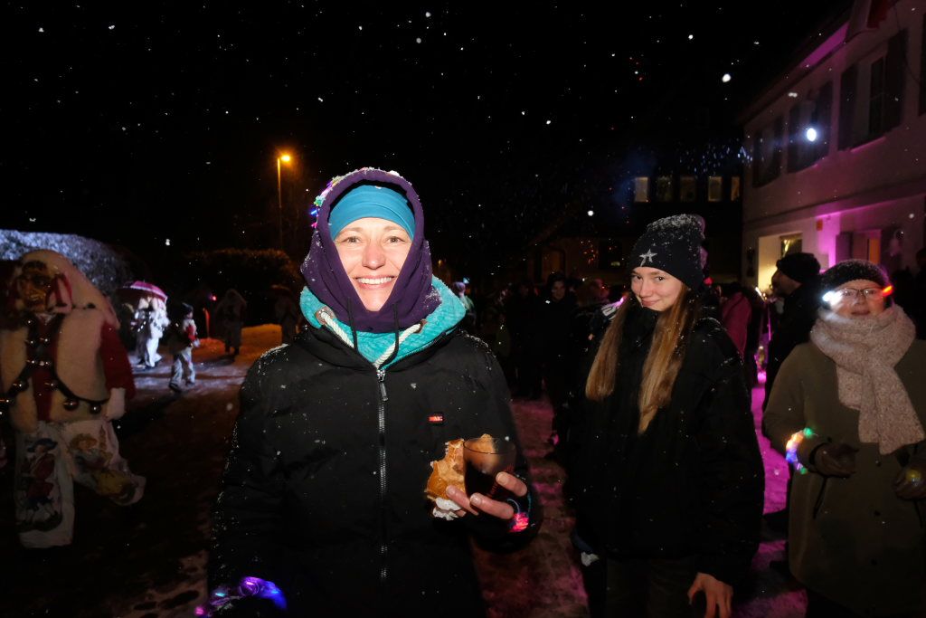 Der Zunftmeister bedankte sich danach noch bei allen an der Organisation des Fasnetsauftaktes Beteiligten. Auch der Feuerwehr fürs Absperren der Straße, dem „Thekenpersonal“ für die Versorgung mit kalten und warmen Getränken sowie der eigens für den Abend gegründeten Fasnetsmusi galt sein Dank.
