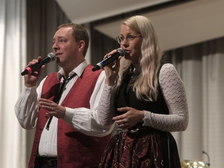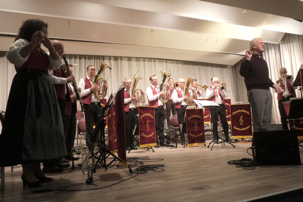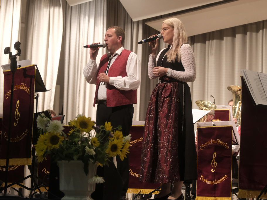Bad Wurzach – Die Oberschwäbischen Dorfmusikanten (OSDM) traten mit ihrem neuen Dirigenten Simon Föhr zu zwei Gastspielen in der Kurhaus-Kulturschmiede (Kursaal) in Bad Wurzach an. Als Ehrengäste hatten sie Peter Schad und dessen langjährige Sängerin Conny eingeladen. Und gaben mit Mundartdichter Hugo Breitschmid der Veranstaltung noch eine literarische Note.