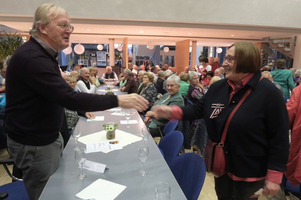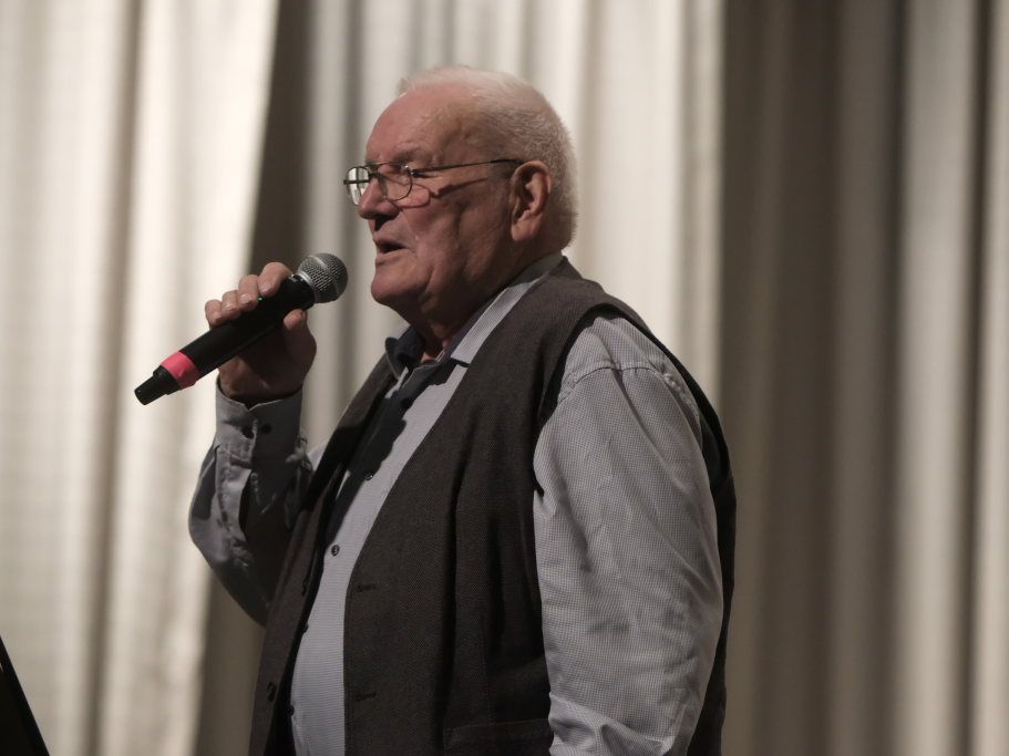 Mundartdichter Hugo Breitschmid (Bild) eröffnete mit einem lustigen Wortspiel zum Thema „Babbadeckl“. Dann wurde es ernst: Das Gedicht „Mein Traum“ befasste sich mit Krieg und Frieden. Und leitete damit geschickt zum nächsten Titel „Ich glaube“ dem von Simon Föhr gesungenen, bisher noch weitgehend unbekannten Udo-Jürgens-Anti-Kriegstitel über. Zu denen auch in den heutigen unruhigen Zeiten der später von Carina Kienle interpretierte frühere Grand Prix-Eurovision Gewinnertitel „Ein bisschen Frieden“ zählt.